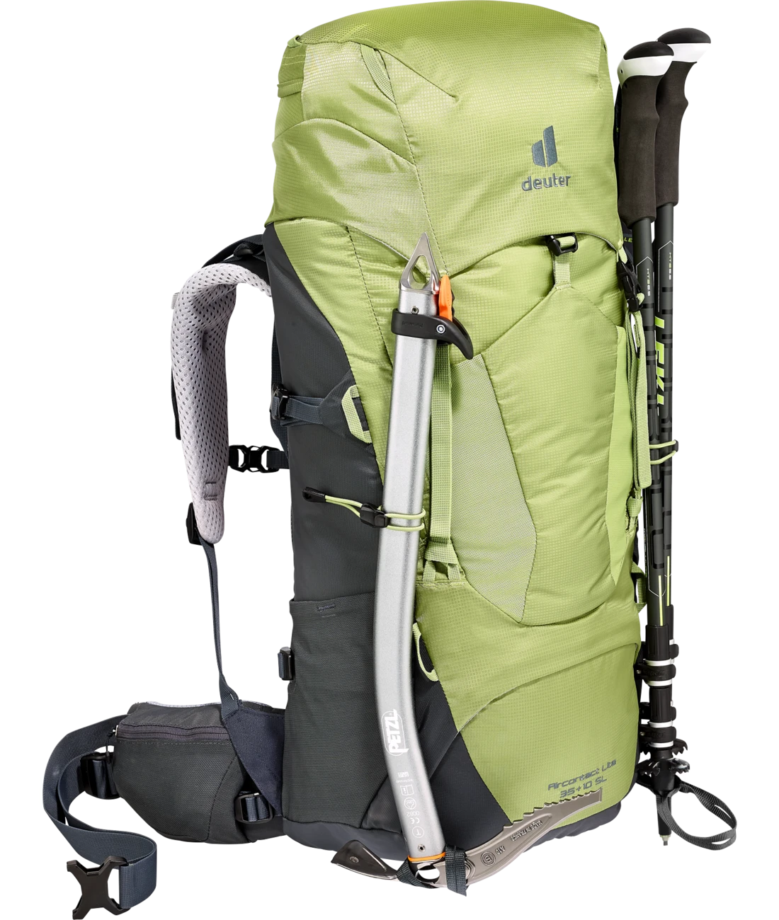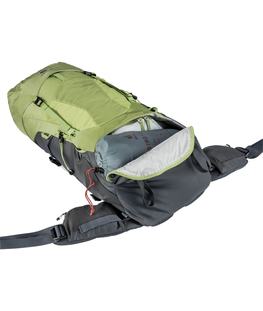 Der sportliche Wanderrucksack in klarem Design ist jetzt noch leichter und sorgt mit dem Aircomfort Rückensystem für maximale Belüftung. Dank VariQuick-Rückenlängenanpassung, verstellbarem Brustgurt, ergonomischen Schulterträgern und Hüftflossen bietet dieser kompakte Rucksack auf Langstreckentouren hohen Tragekomfort. Über die Deckelfachöffnung lässt sich das Gepäck bequem ein- und auspacken. Smartphone oder Snacks sind griffbereit in der elastischen und luftigen Seitentasche verstaut. Der Helm kann mit einer zusätzlichen Helmhalterung an die Loops außen am Rucksack fixiert werden.