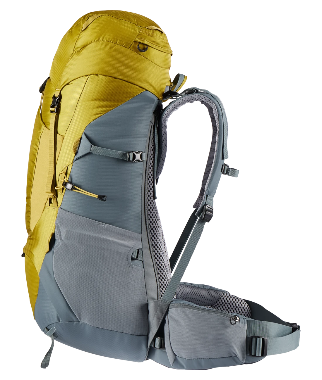 Der sportliche Wanderrucksack in klarem Design ist jetzt noch leichter und sorgt mit dem Aircomfort Rückensystem für maximale Belüftung. Dank VariQuick-Rückenlängenanpassung, verstellbarem Brustgurt, ergonomischen Schulterträgern und Hüftflossen bietet dieser kompakte Rucksack auf Langstreckentouren hohen Tragekomfort. Über die Deckelfachöffnung lässt sich das Gepäck bequem ein- und auspacken. Smartphone oder Snacks sind griffbereit in der elastischen und luftigen Seitentasche verstaut. Der Helm kann mit einer zusätzlichen Helmhalterung an die Loops außen am Rucksack fixiert werden.