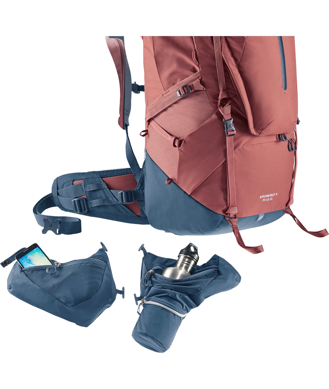 Ein Multifunktions-Profi dank individuell fixierbaren Kompressionsriemen für flexible Anbringung der Ausrüstung. Zudem besitzt der Rucksack aus bluesign® zertifiziertem Hauptmaterial weiteren Stauraum in den abnehmbaren Hüftflossentaschen. Eine Trinkflasche hat Platz in der ausklappbaren Tasche. Die jeweiligen Volumengrößen des Aircontact X sind durch die verstellbare Rückenlänge des VariSlide System, die passgenauen VariFlex Hüftflossen und die beweglichen ActiveFit Schulterträger auf die individuelle Größe des Trägers optimierbar und dank großflächigem Air Spacer Mesh angenehm zu tragen.