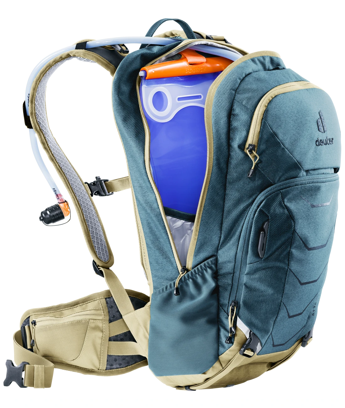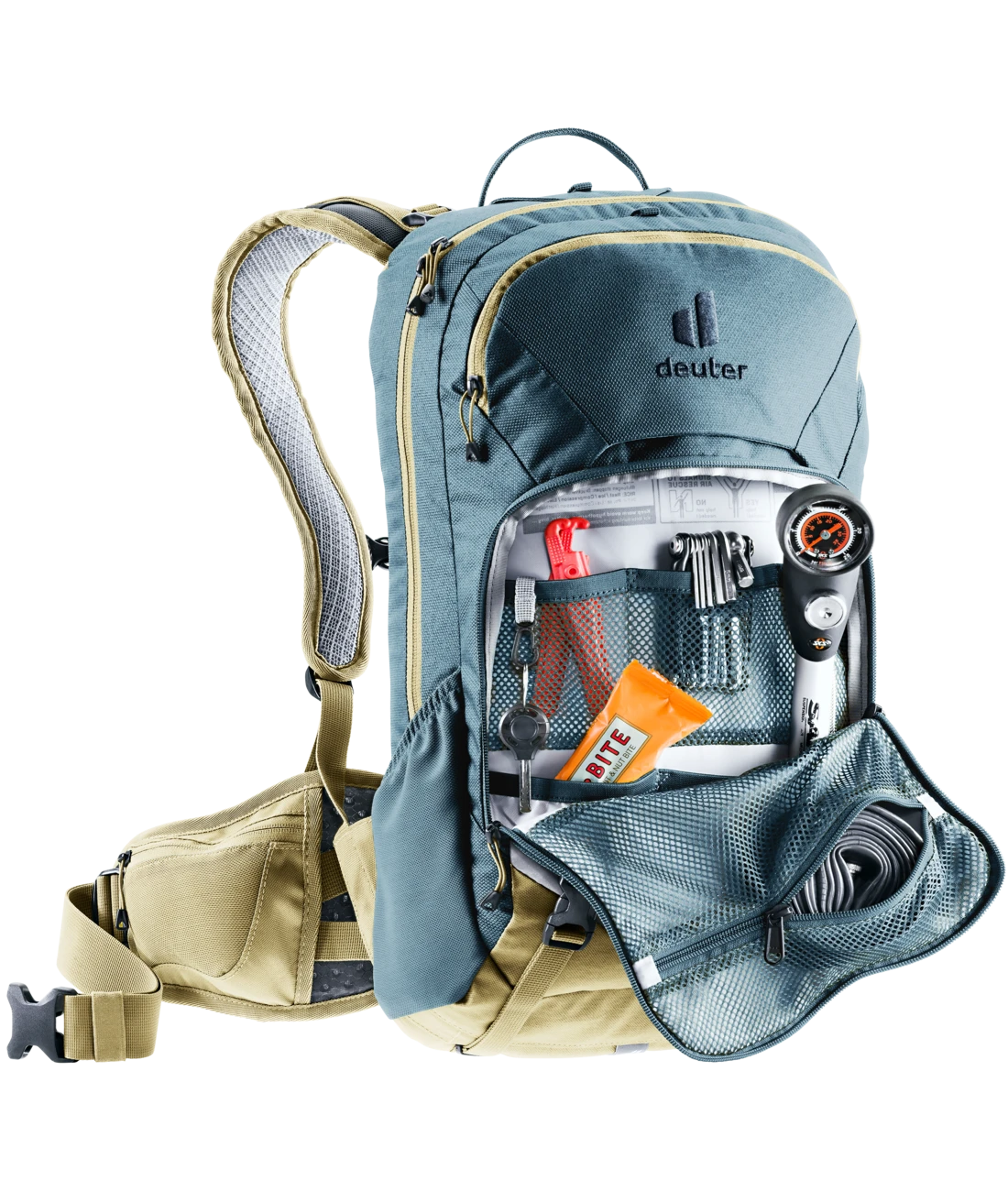 - Vortasche mit großem Organisationsteil und RV Netztasche für Schlauch, Werkzeug und Pumpenhalterung