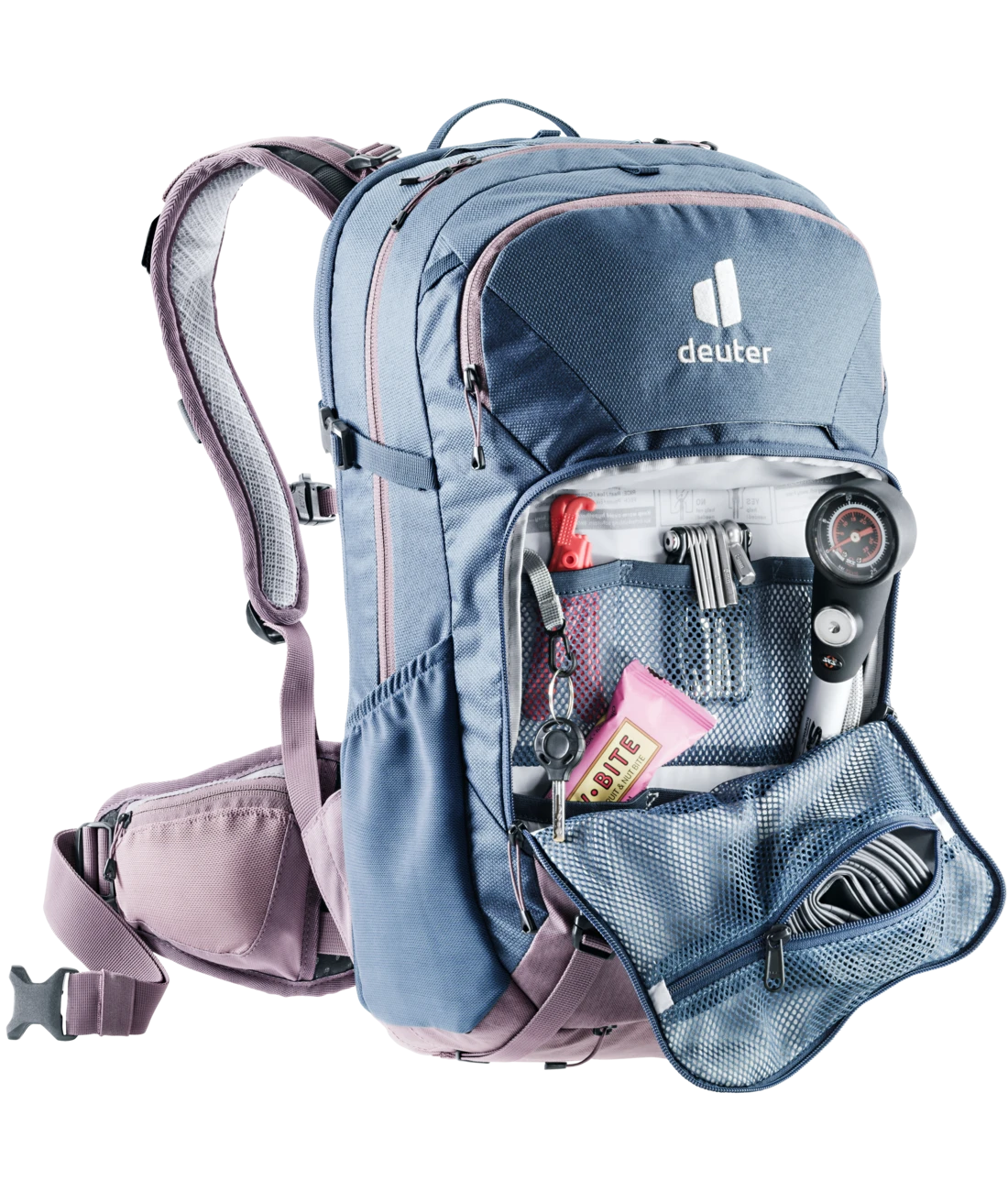- Vortasche mit großem Organisationsteil und RV Netztasche für Schlauch, Werkzeug und Pumpenhalterung