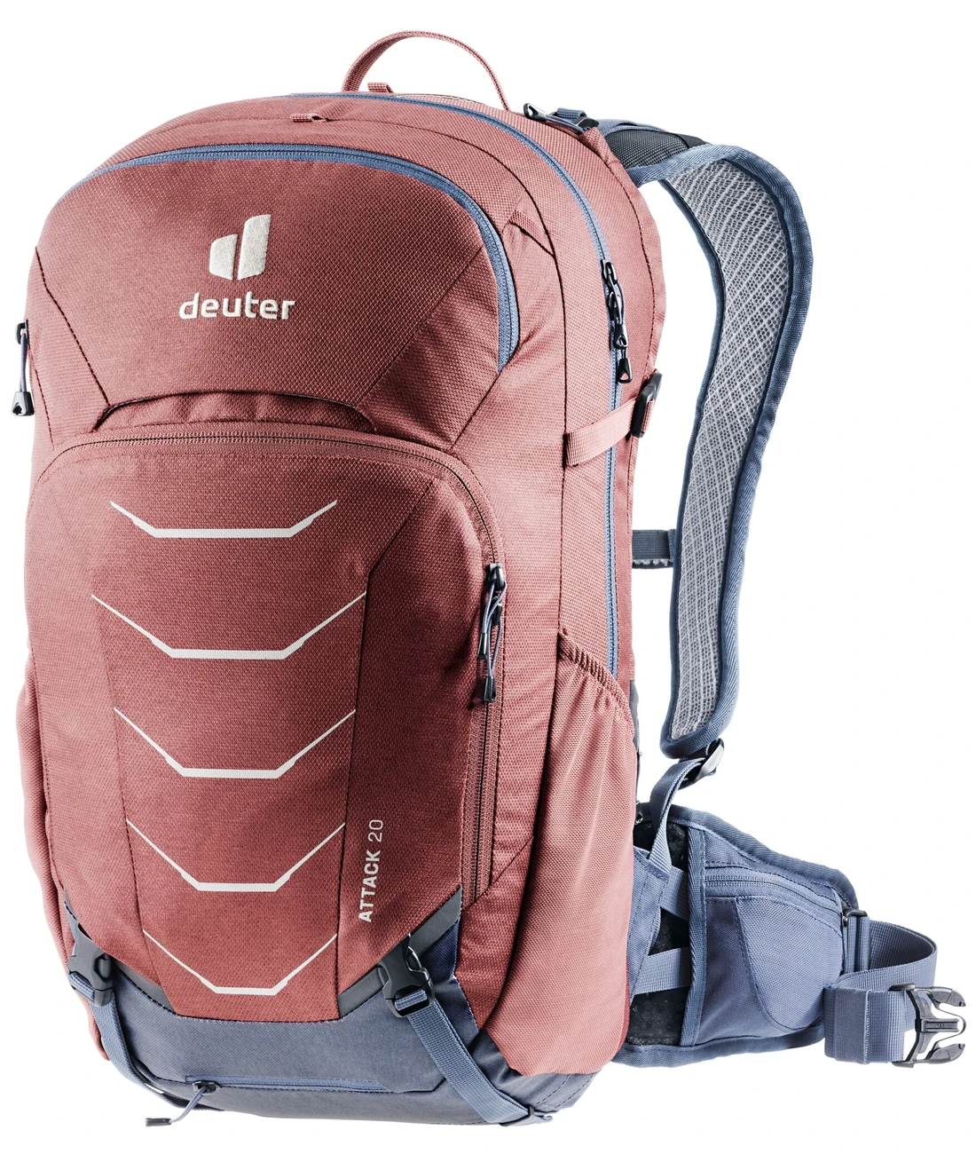 Mit dem neuen TÜV/GS zertifizierten Protektor-Rucksack Attack sind ambitionierte Biker auf anspruchsvollen Trails bestens geschützt. Der herausnehmbare Rückenprotektor, der nach Deformation die ursprüngliche Form wieder annimmt, bietet zusammen mit dem Tragesystem einen Aufprallschutz, der dem Standard für Motorradfahrer entspricht. Zudem bleibt der Bike-Rucksack dank des hohen Hüftflossen-Ansatzes auch auf ruppigen Abfahrten fest am Rücken. Tragepassagen erleichtert der Carrying Guard und bei schweißtreibenden Auffahrten sind Helm und Protektoren ganz einfach außen am Rucksack zu befestigen.