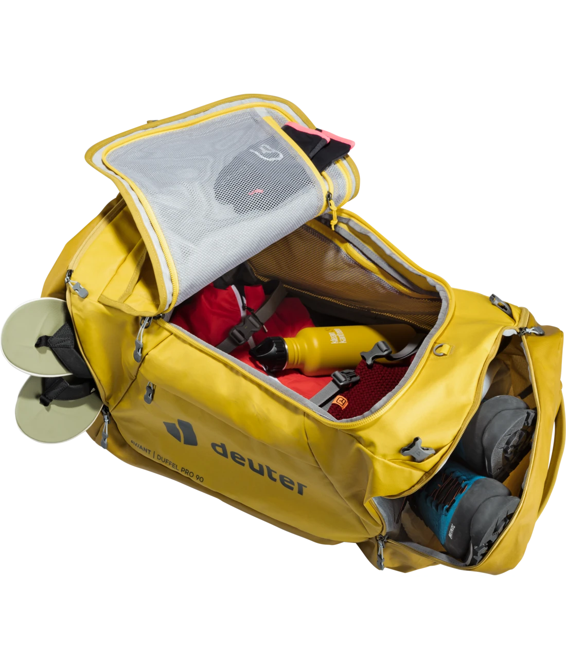 Sie verbinden häufig Sport und Reisen? Die Aviant Duffel Pro bietet viel Platz für Ihre Ausrüstung und Bekleidung. Mit den verstaubaren Schulterträgern funktioniert die Reisetasche auch als Rucksack. Die robusten, nachhaltig produzierten Begleiter sind bluesign zertifiziert und schützen Ihr Gepäck vor Nässe und Staub. Wieder zu Hause können Sie Ihre Duffel ganz einfach zusammenfalten und in der integrierten Außentasche verstauen.