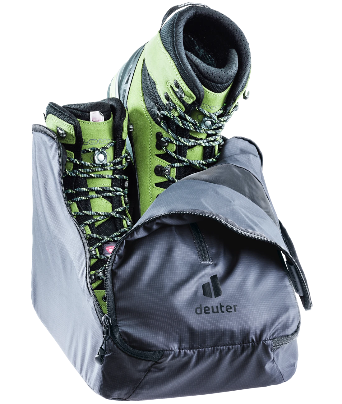 Diese geräumige Stiefeltasche mit Reißverschluss bewahrt Ihr Gepäck vor dem Schmutz und der Nässe Ihrer Bergstiefel.