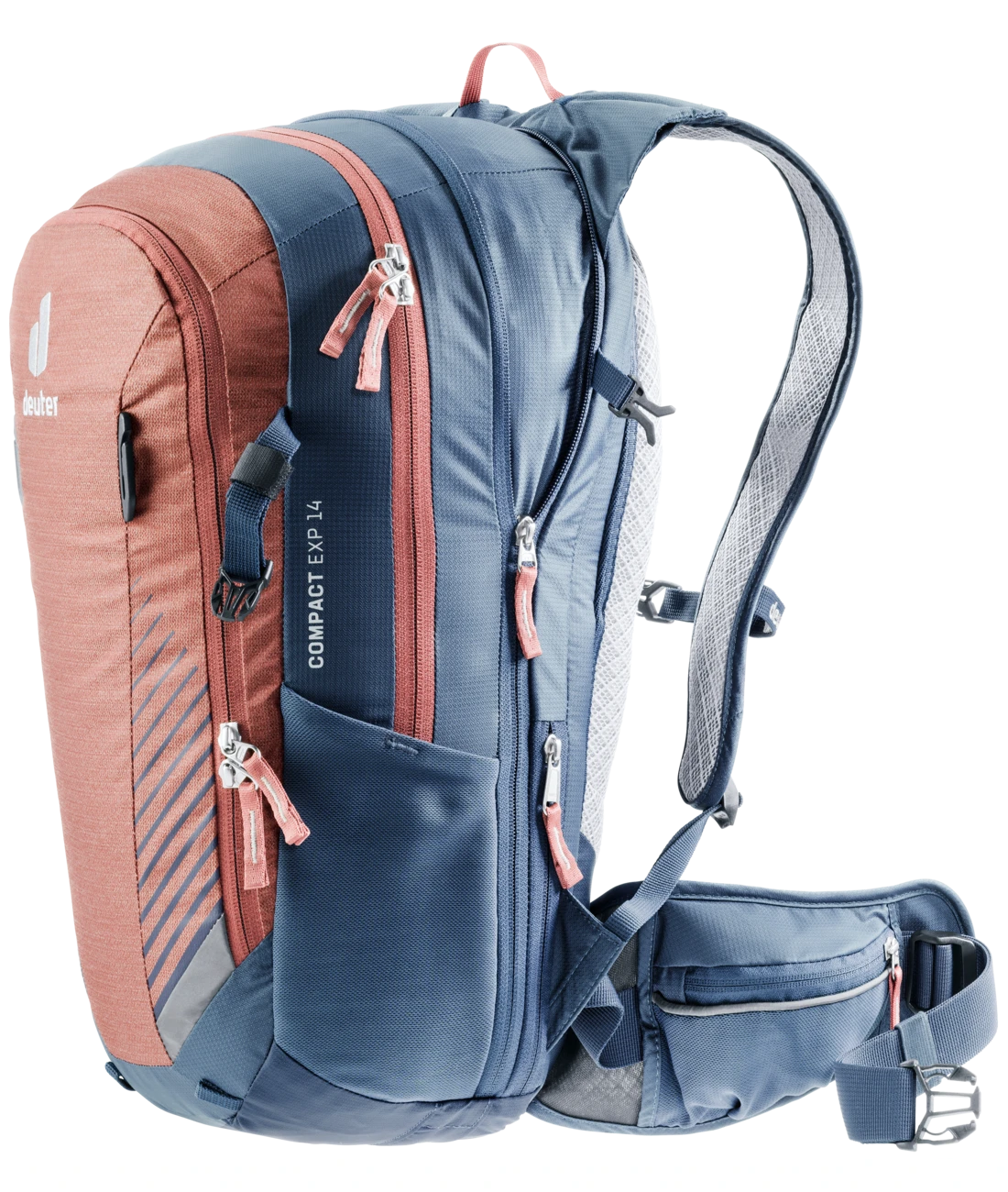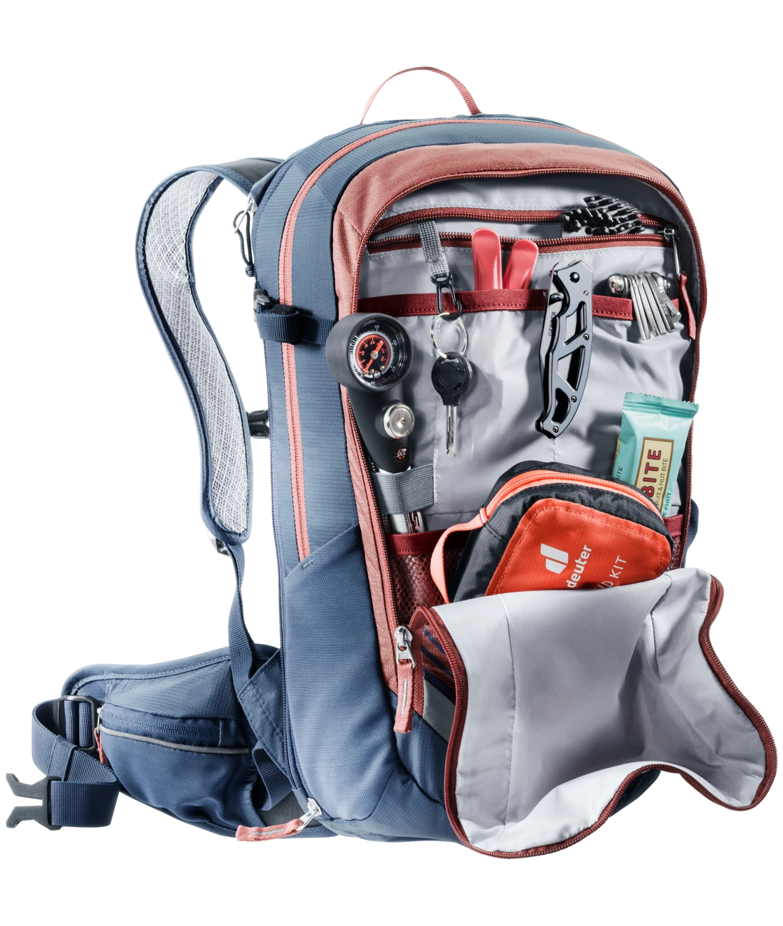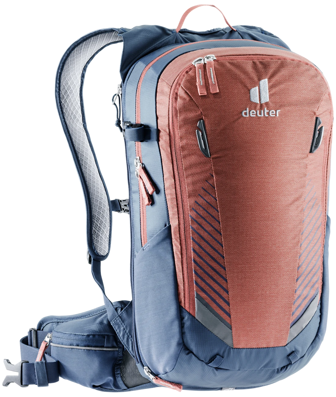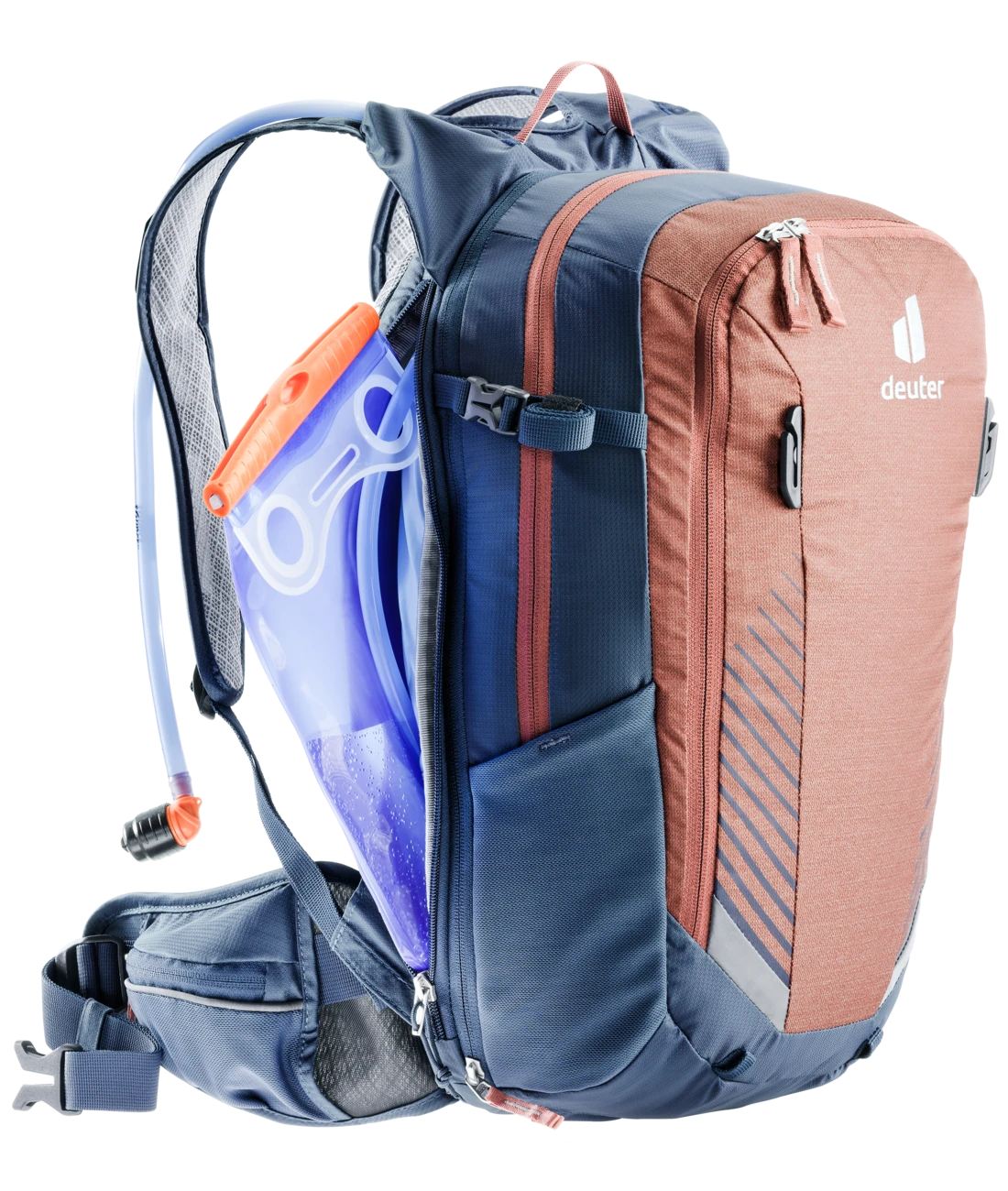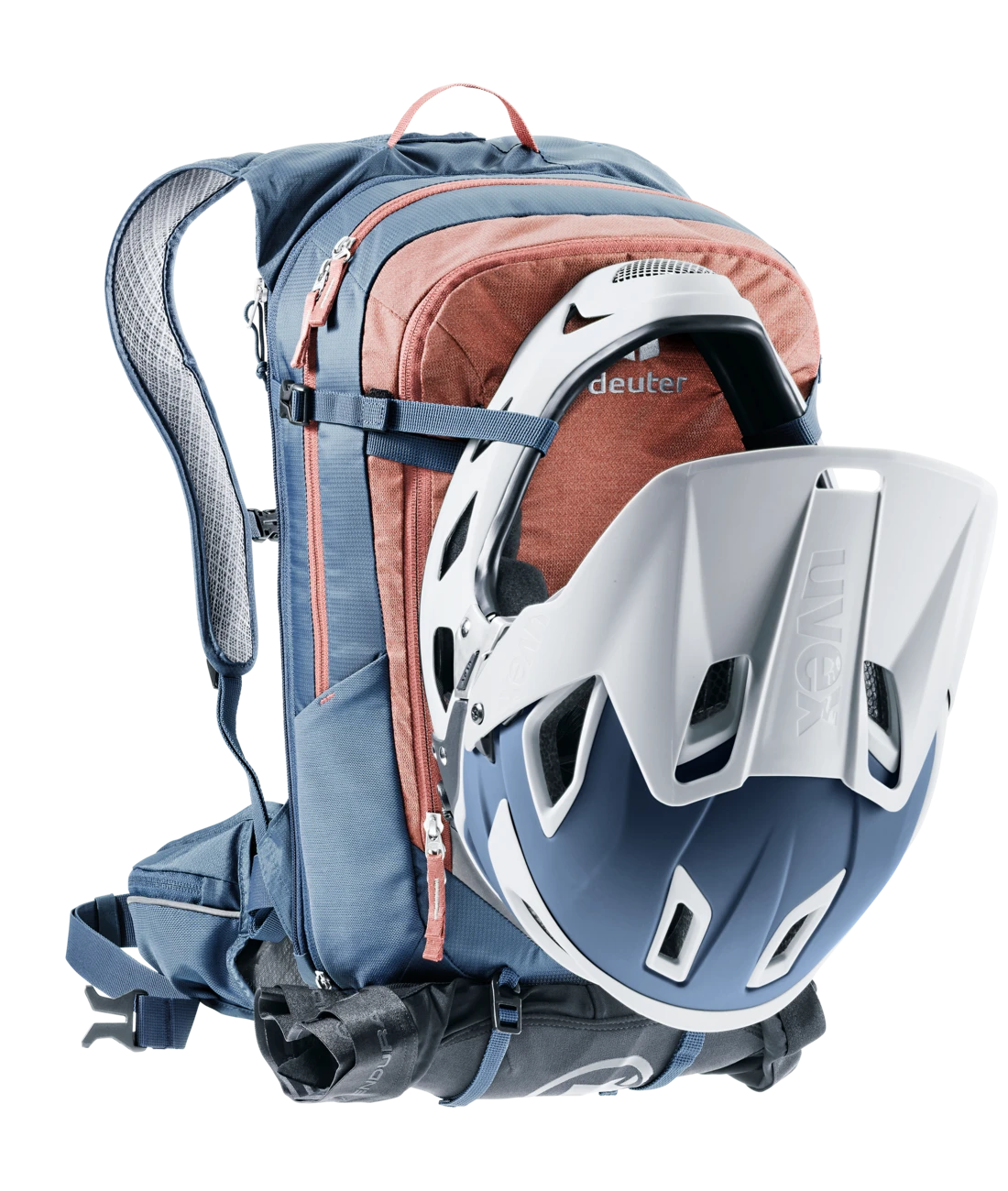 Der Compact ist ein Bike-Rucksack für Mountainbiker, der bequem und fest auf dem Rücken sitzt. Er besticht vor allem mit seiner perfekten Ausstattung: Er hat ein extra Fach für die Trinkblase, ein separates Fach für das Smartphone, ein übersichtliches Werkzeugfach, zwei Reißverschluss-Taschen auf den Hüftflossen und zwei elastische Seitentaschen. Außerdem besteht die Möglichkeit das Volumen des Rucksacks zu erweitern. Der Halbschalenhelm kann ganz einfach vorne in die Befestigungs-Clips gehangen werden, während sich die seitlichen Kompressionsriemen zur Fixierung des Fullface-Helms eignen.