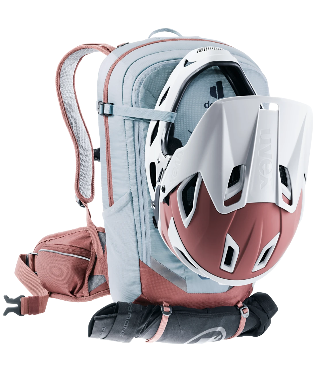 Weniger ist mehr – der gewichtsoptimierte, TÜV/GS zertifizierte Protektor-Rucksack Flyt SL ist auf die essenziellen Features reduziert. So sorgt ein leichter, herausnehmbarer Rückenprotektor für Schutz bei Stürzen. Zur Fixierung des Helms gibt es Clips außen am Rucksack (Halbschalen-Helm) oder seitliche Kompressionsriemen (Fullface-Helm). Zwei verstaubare Riemen am unteren Ende des Rucksacks ermöglichen zudem die Befestigung der Bike-Protektoren. Der speziell für Frauen verkürzte Rücken mit dem bewährten, leichten Airstripes-System sorgt zusätzlich für ausreichende, angenehme Belüftung.