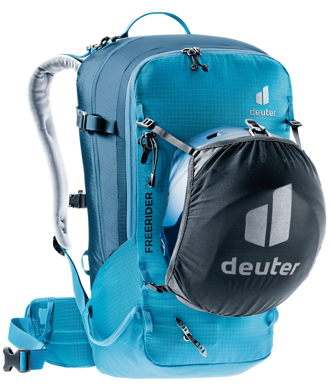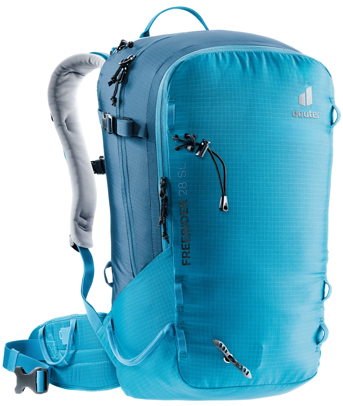 Der Freerider besticht mit seiner durchdachten Winter-Ausstattung, zum Beispiel mit der komplett aufklappbaren Rückenöffnung. Zum einen bietet er so einen optimalen Überblick über die Ausrüstung. Zum anderen bleibt das Rückensystem beim Ablegen des Rucksacks trocken. Sollte trotzdem etwas Schnee an das Tragesystem gelangen, sorgt das neue robuste, atmungsaktive und schneeabweisende Material für einen trockenen Rücken. Auch das Thema Sicherheit wird beim Freerider großgeschrieben. Mit dem separaten und schnell zugänglichen Sicherheitsfach für Sonde und Schaufel hält der Touren-Rucksack das Wichtigste im Notfall griffbereit. Neu ist auch das variable Fixierungssystem. Mit zwei separaten Riemen können Skier, Snowboard und Schneeschuhe im Handumdrehen außen am Rucksack befestigt werden: Skier diagonal oder in A-Form, Snowboard und Schneeschuhe vertikal. Außerdem dienen die flexibel einsetzbaren Befestigungsriemen zur seitlichen Kompression.