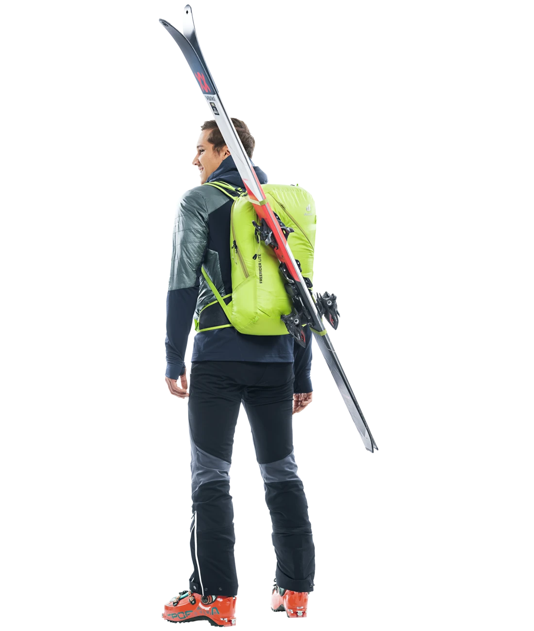 Sind Sie im Winter gerne in den Bergen unterwegs – egal ob bergauf oder bergab? Dann haben wir einen passenden und extra leichten Tourenrucksack für Sie: den Deuter Freerider Lite. Mit dem Lite Tragesystem und dem neuen robusten, atmungsaktiven und schneeabweisenden Bezugsstoff sitzt der Freerider Lite angenehm auf dem Rücken. Nasse, verschwitzte Ausrüstung kann ganz einfach im Frontfach verstaut werden – so bleiben alle Sachen im Hauptfach trocken. Neu ist auch das variable Fixierungssystem. Mit zwei separaten Riemen können Skier, Snowboard und Schneeschuhe im Handumdrehen außen am Rucksack an den Materialschlaufen befestigt werden: Skier diagonal, Snowboard und Schneeschuhe vertikal. Mit diesem Leichtgewicht meistern Sie Höhenmeter spielend leicht.