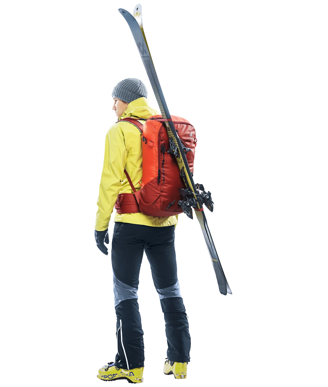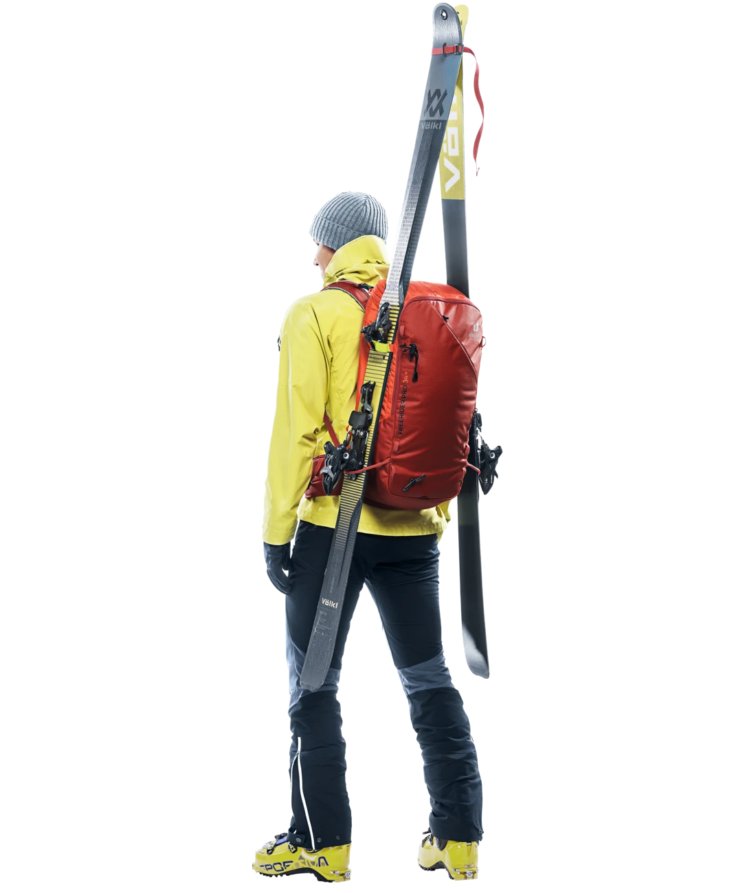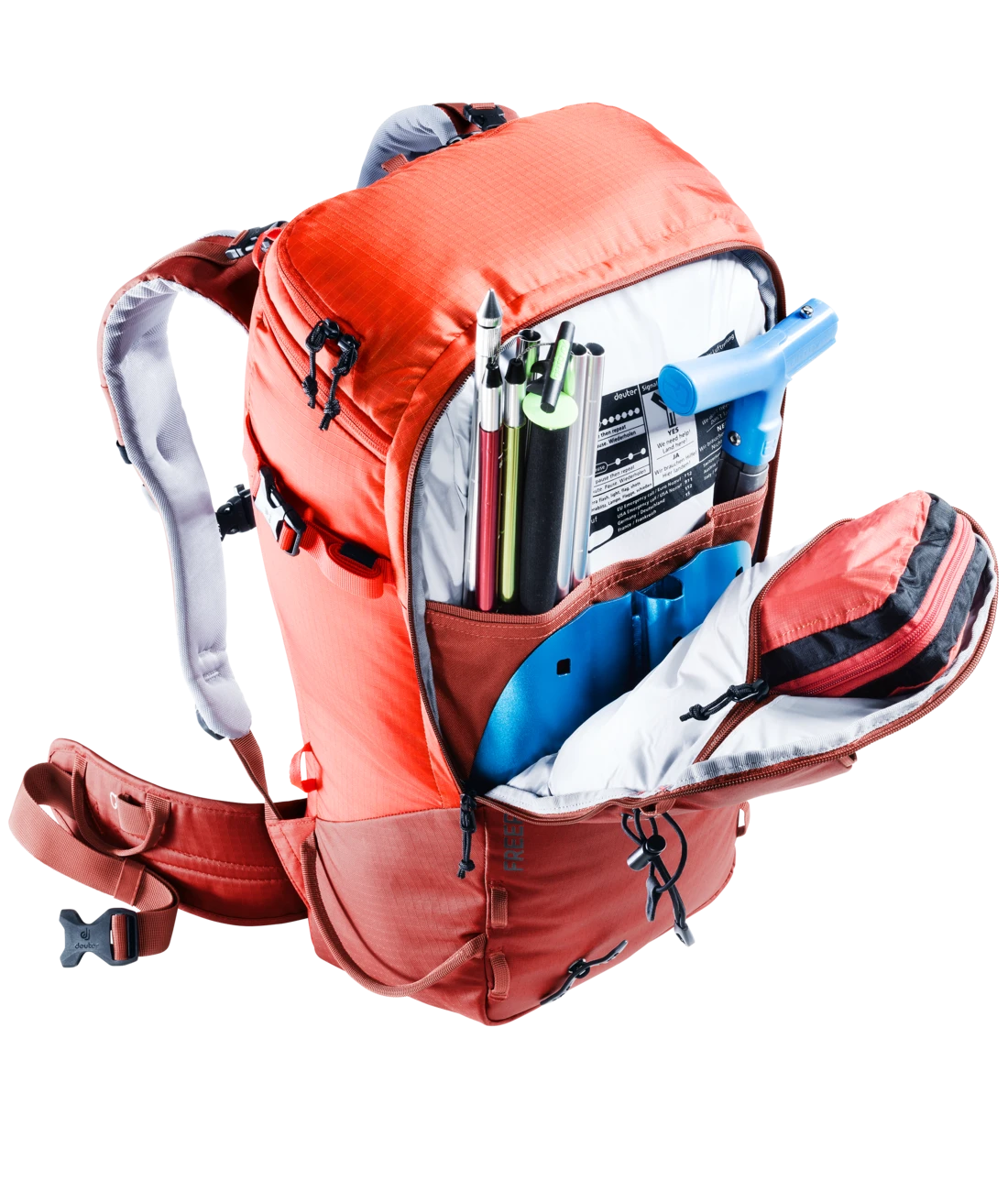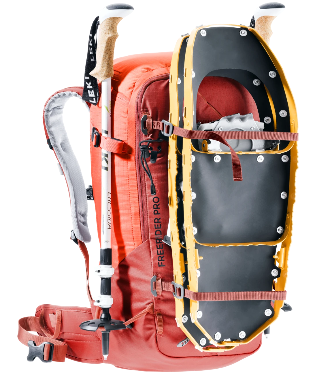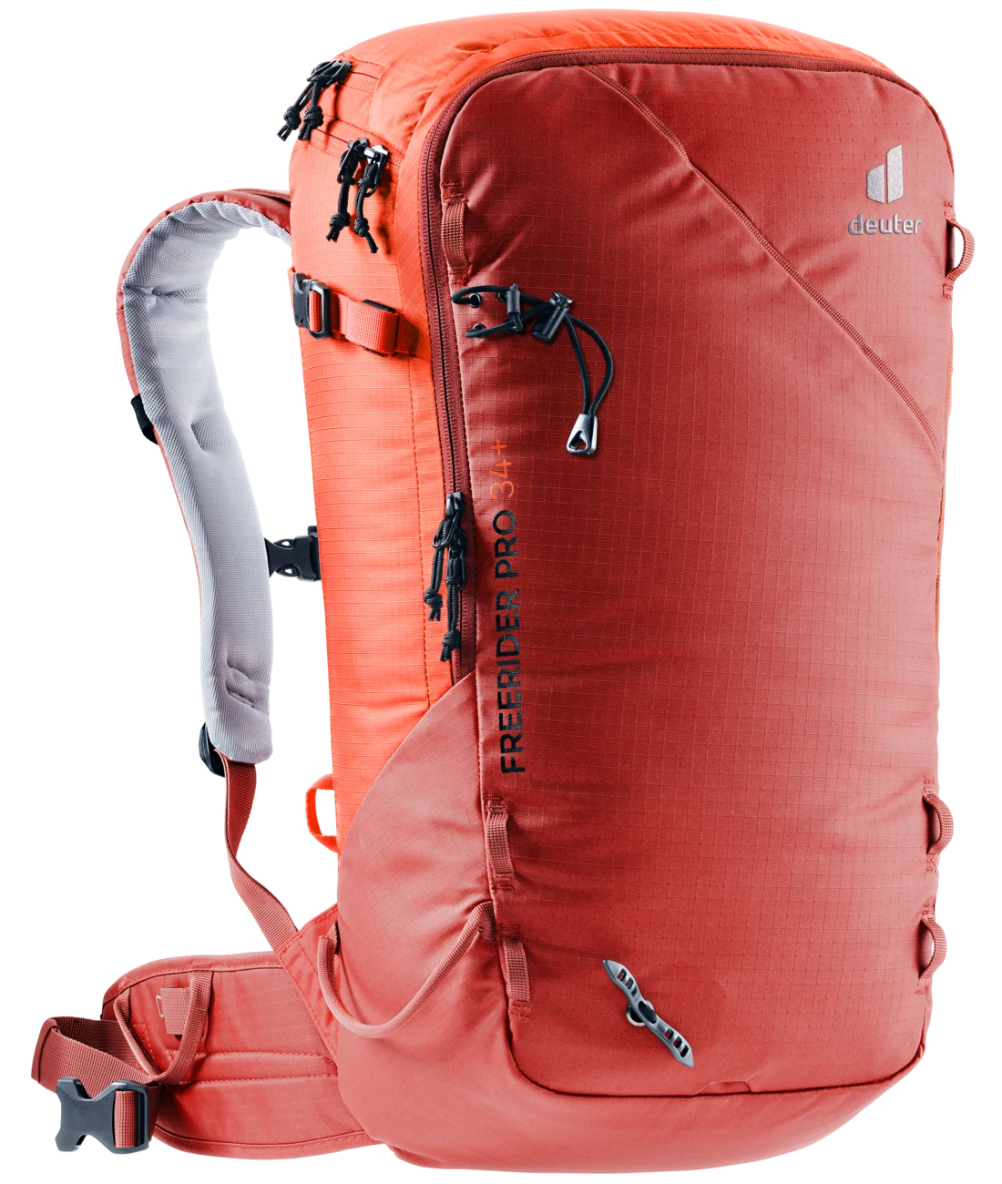 Der Freerider Pro ist mit seiner vielseitigen Ausstattung genau richtig für Mehrtagestouren in verschneiten Bergen. Ein Highlight des Freerider Pro ist das neue Rolltop. Denn damit können Sie das Volumen um ca. 10 Liter erweitern. Außerdem befindet sich an dem Rolltop ein verstaubarer Riemen, mit dem man zusätzliches Gepäck oder ein Seil fixieren oder das Rolltop selbst komprimieren kann. Wenn Sie ihre Skier, Schneeschuhe oder das Snowboard in bestimmten Passagen nicht benötigen, können Sie sie ganz einfach und sicher außen am Rucksack – mit den extra dafür vorgesehenen Befestigungsriemen – fixieren. Skier lassen sich diagonal oder in A-Form, Snowboard und Schneeschuhe vertikal befestigen. Außerdem dienen die flexibel einsetzbaren Riemen zur seitlichen Kompression.