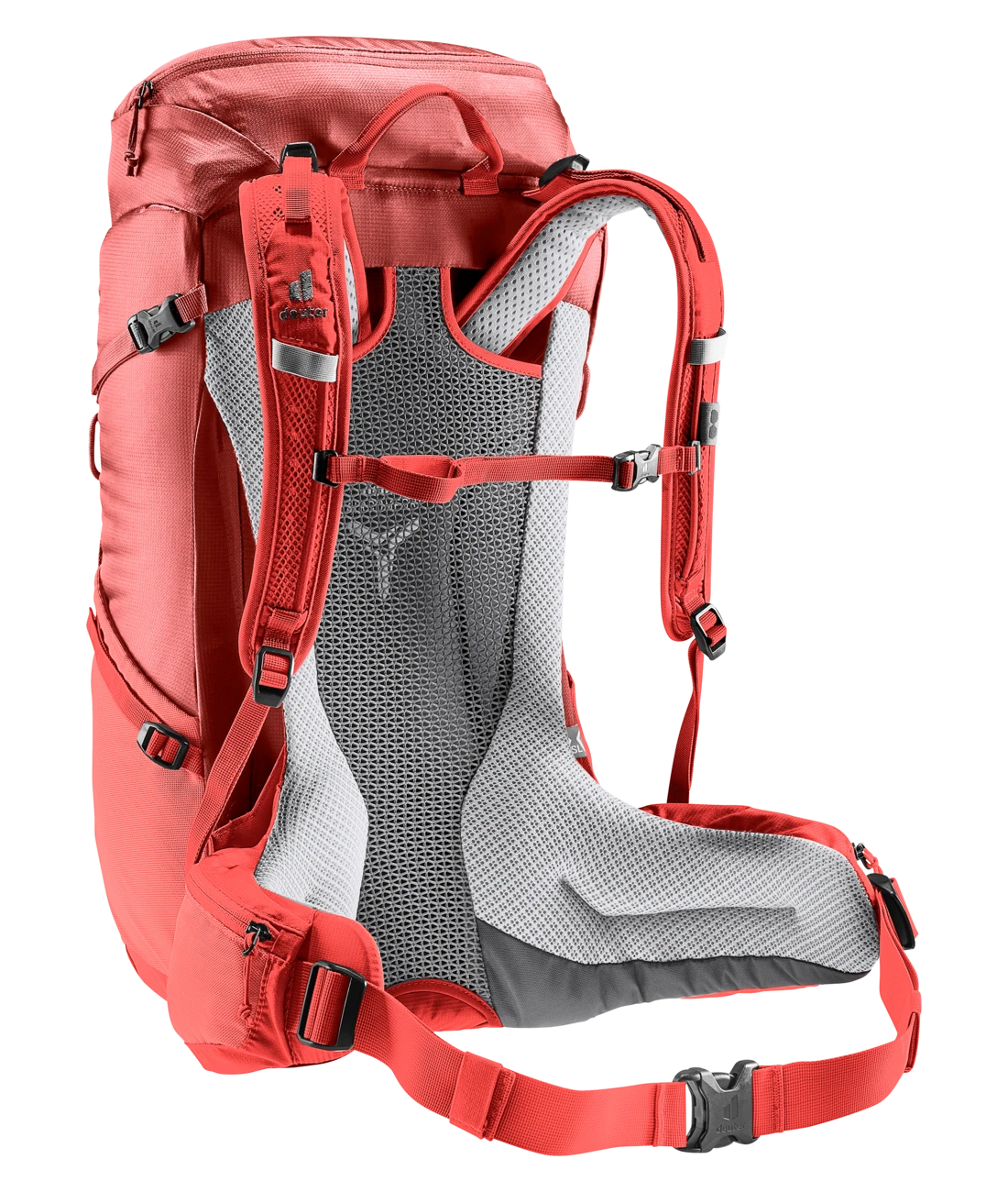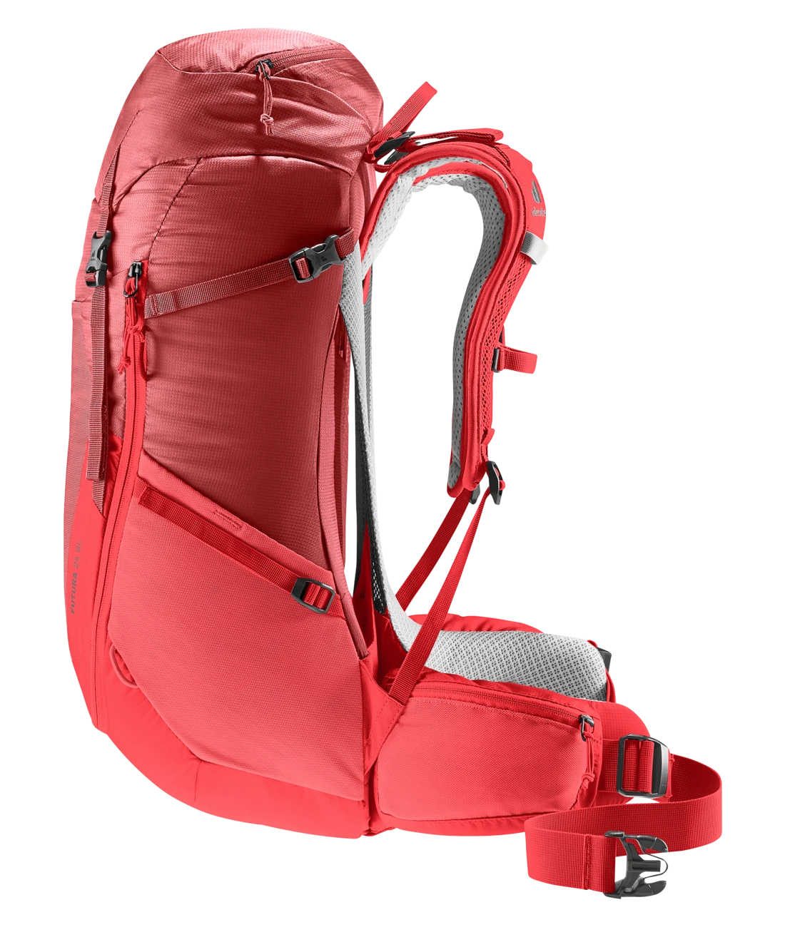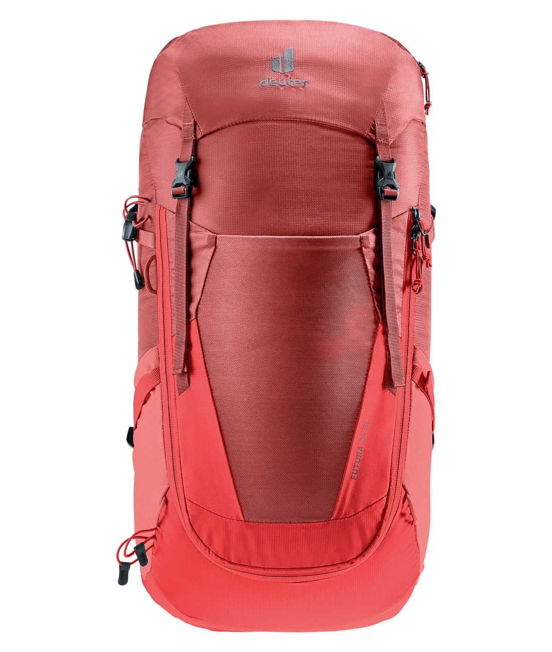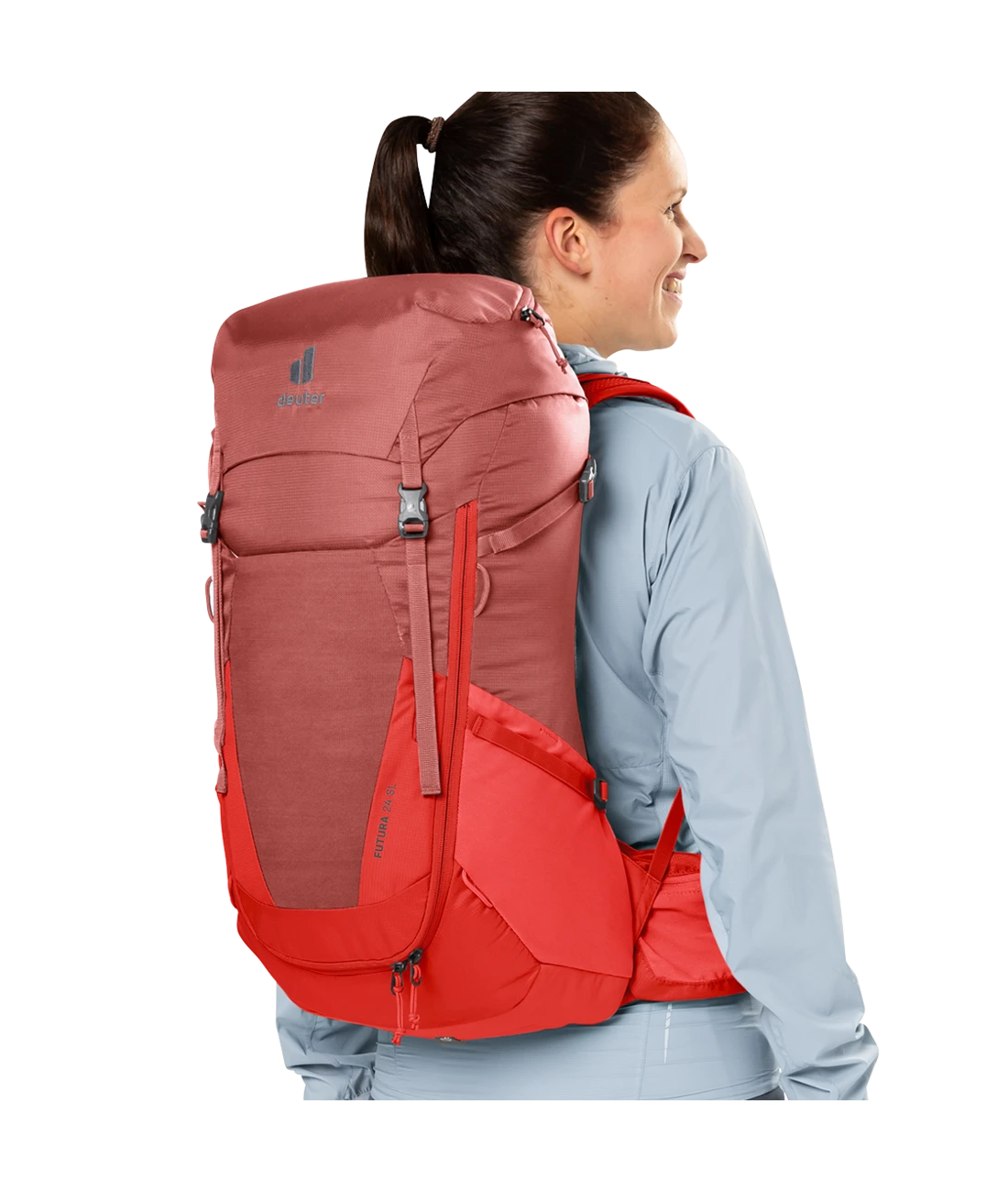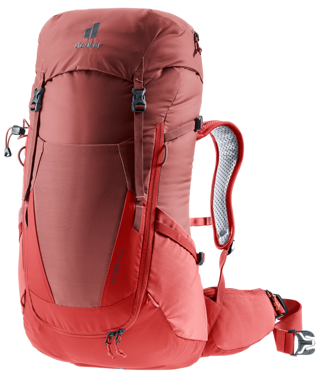 Der Futura SL ist aufgrund des kürzeren Rückens, der schmäleren Schulterträger und der konisch geformten Hüftflossen speziell auf die weibliche Anatomie abgestimmt und sorgt damit für erhöhten Tragekomfort auf längeren Tages- und Mehrtageswanderungen. Zudem bietet das neue Mesh des Aircomfort Rückensystem maximale Belüftung und verringert das Schwitzen damit um bis zu 25%. Zudem verschafft die große Frontöffnung einen leichten Zugriff auf und einen guten Überblick über den Inhalt des Rucksacks.