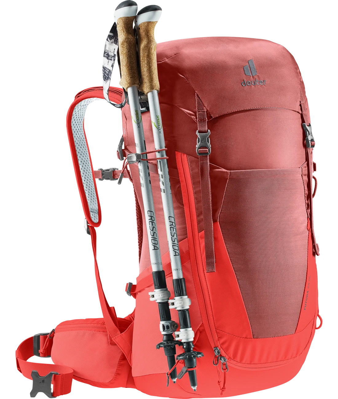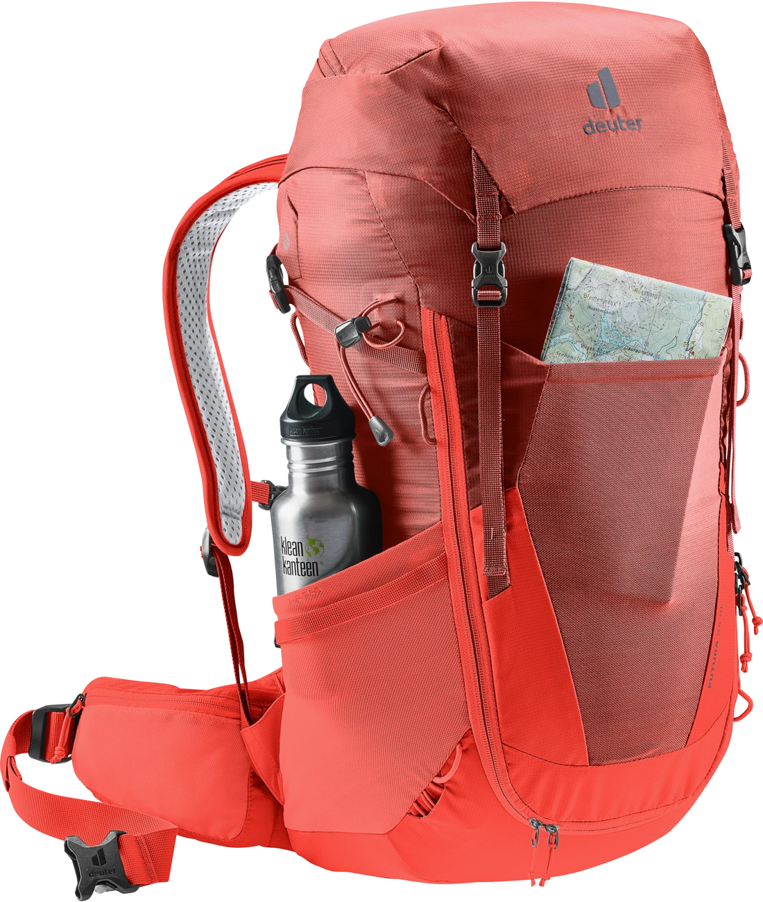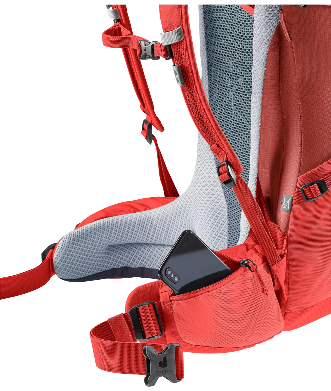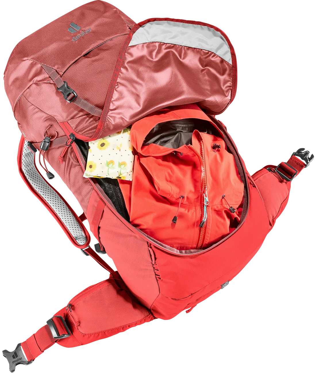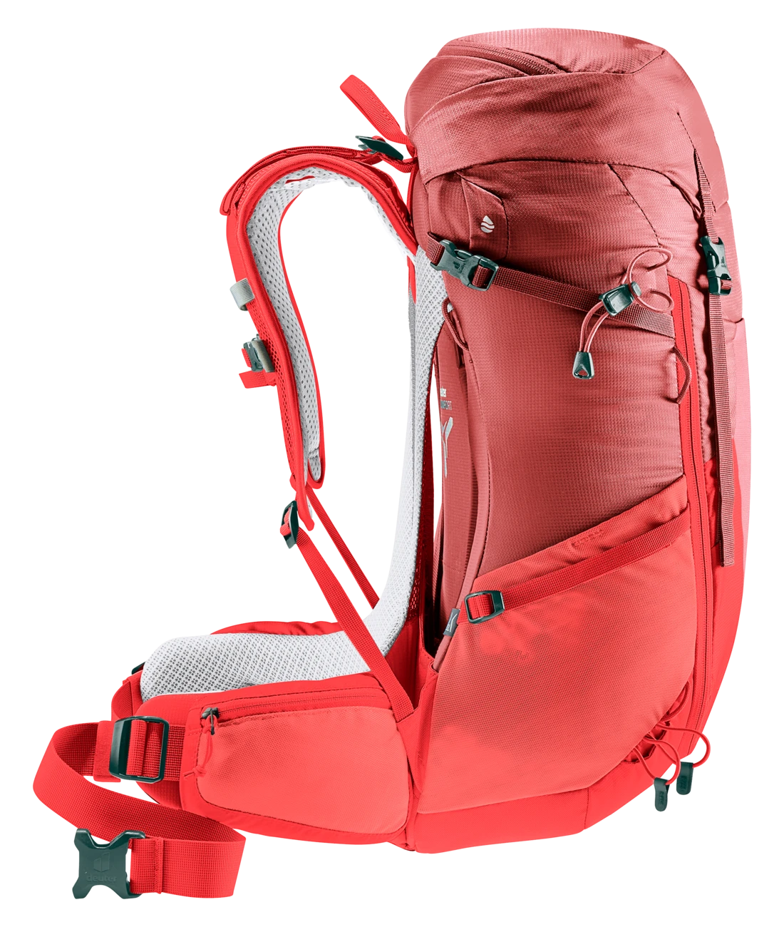 Der Futura SL ist aufgrund des kürzeren Rückens, der schmäleren Schulterträger und der konisch geformten Hüftflossen speziell auf die weibliche Anatomie abgestimmt und sorgt damit für erhöhten Tragekomfort auf längeren Tages- und Mehrtageswanderungen. Zudem bietet das neue Mesh des Aircomfort Rückensystem maximale Belüftung und verringert das Schwitzen damit um bis zu 25%. Zudem verschafft die große Frontöffnung einen leichten Zugriff auf und einen guten Überblick über den Inhalt des Rucksacks.