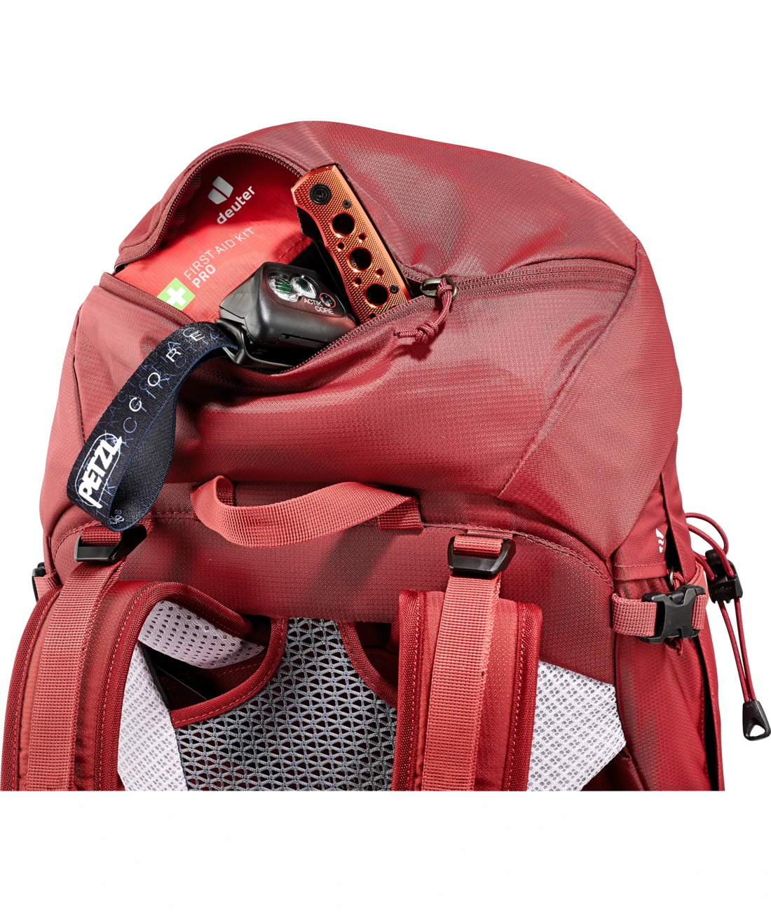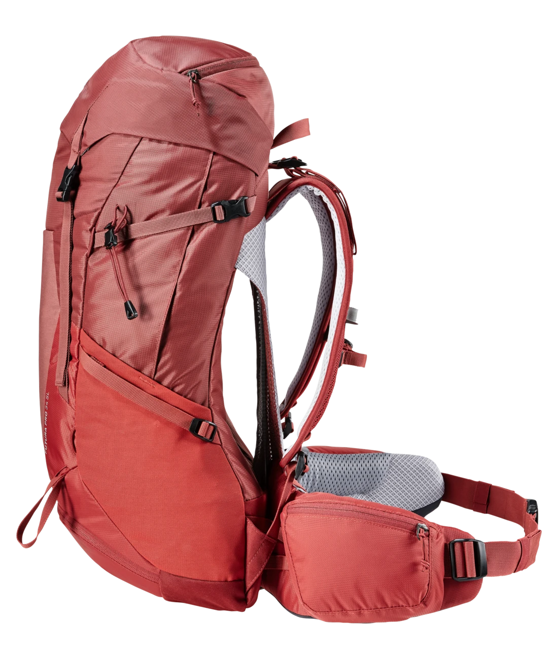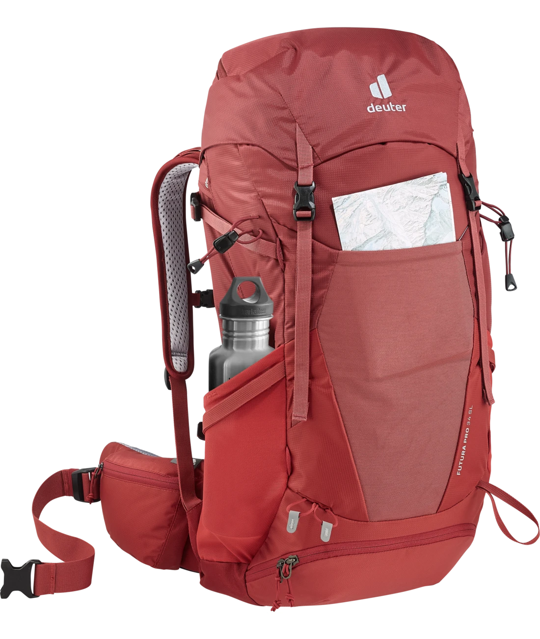 Der auf die weibliche Anatomie abgestimmte Futura Pro SL wurde für Mehrtagestouren entwickelt, bei denen es an Komfort nicht mangeln darf. Daher besitzt der Rucksack das ergonomische Aircomfort Sensic Pro Netzrücken System. Dieses sorgt aufgrund des neuartigen Mesh für maximale Rückenbelüftung. Zudem ermöglichen die beweglichen VariFlex ECL Hüftflossen mit ergonomischen Polstereinsätzen ein energiesparendes Tragen. Dank der klaren Fächeraufteilung lässt sich das Gepäck im Deckelfach, in seitlichen Balgtaschen, im separaten Bodenfach sowie im geräumigen Hauptfach sinnvoll und leicht verstauen.