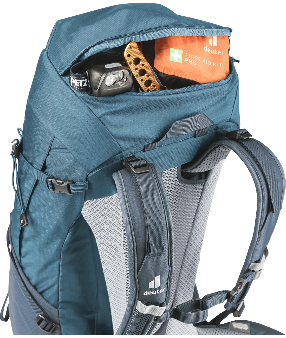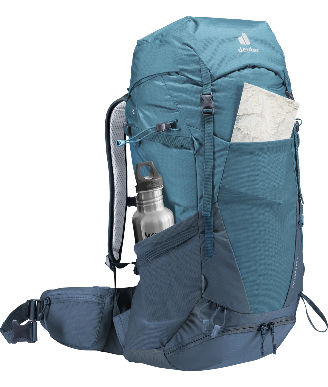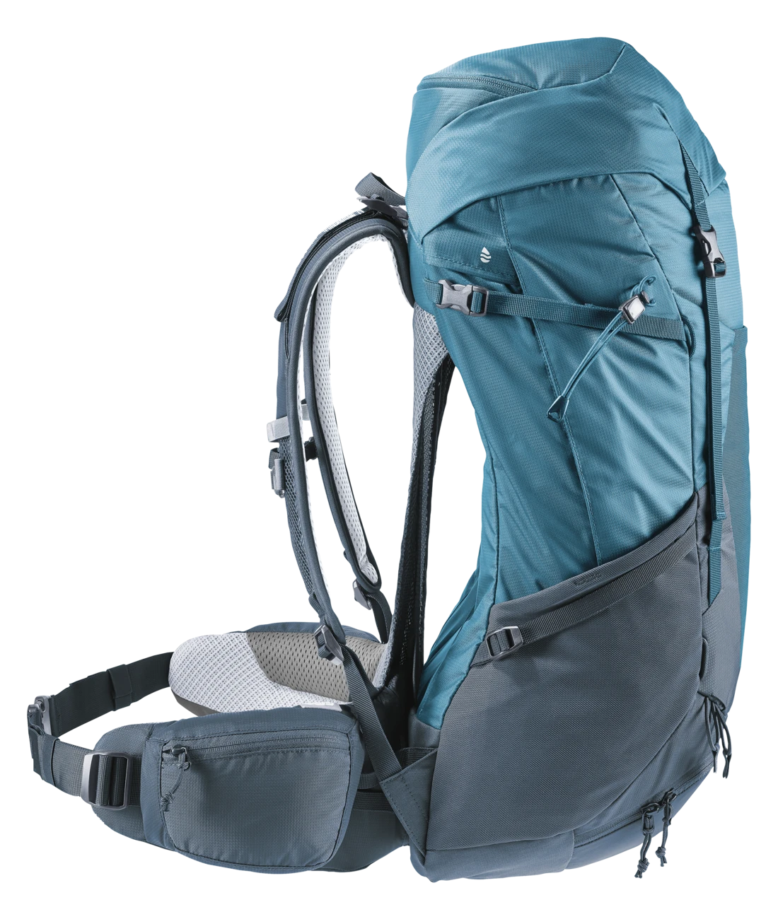 Der bis ins Detail durchdachte Futura Pro wurde für Mehrtagestouren entwickelt, bei denen es an Komfort nicht mangeln darf. Daher besitzt der Wanderrucksack das ergonomische Aircomfort Sensic Pro Netzrücken System. Dieses sorgt aufgrund des neuartigen Mesh für maximale Rückenbelüftung. Zudem ermöglichen die beweglichen VariFlex ECL Hüftflossen mit ergonomischen Polstereinsätzen ein energiesparendes Tragen. Dank der klaren Fächeraufteilung lässt sich das Gepäck im Deckelfach, in seitlichen Balgtaschen, im separaten Bodenfach sowie im geräumigen Hauptfach sinnvoll und leicht verstauen.