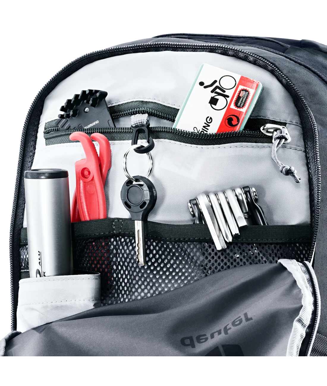 Extrem leichter, stabiler Bike-Rucksack mit hervorragender Gewicht-Komfort-Ratio. Das bikespezifische Aircomfort Rückensystem mit mittig geteiltem Netzrücken reduziert die Auflagefläche und verschafft der, in Fahrhaltung gekrümmten Wirbelsäule mehr Platz. Netzhüftflossen, perforierte Schulterträger und Rückenpolster sorgen für maximale Belüftung und kompakten Sitz. Der klimaneutrale, PFC-freie Rucksack für sportliche Mountainbiker*innen ist aus bluesign(R) zertifiziertem Hauptmaterial aus 100 % recycelten Stoffen und 100 % umweltfreundlich hergestellten, ressourcenschonenden Bestandteilen. Das Volumen lässt sich bei diesem Modell um zusätzliche 3 Liter erweitern – so sind Sie für den Fall der Fälle gewappnet.