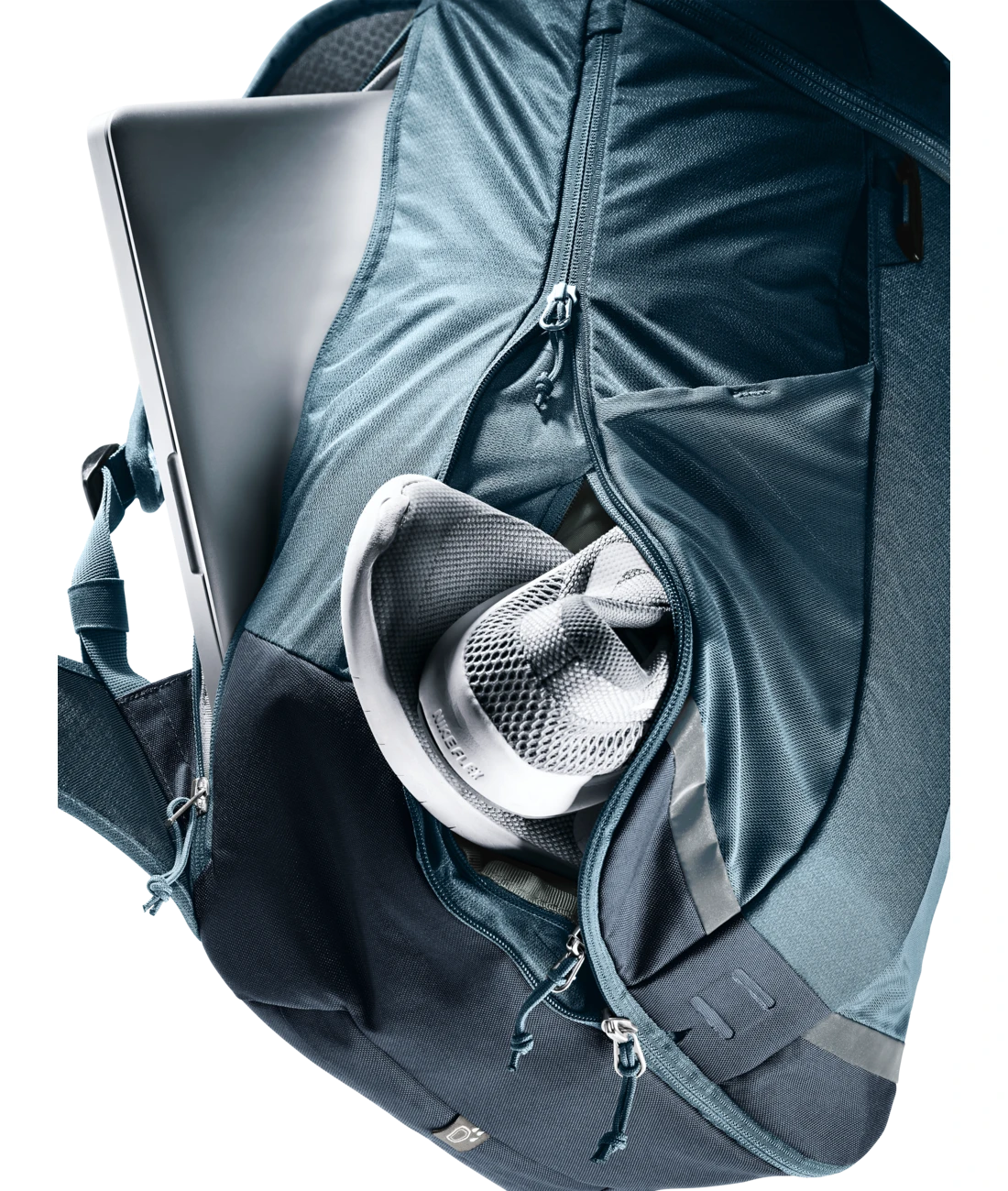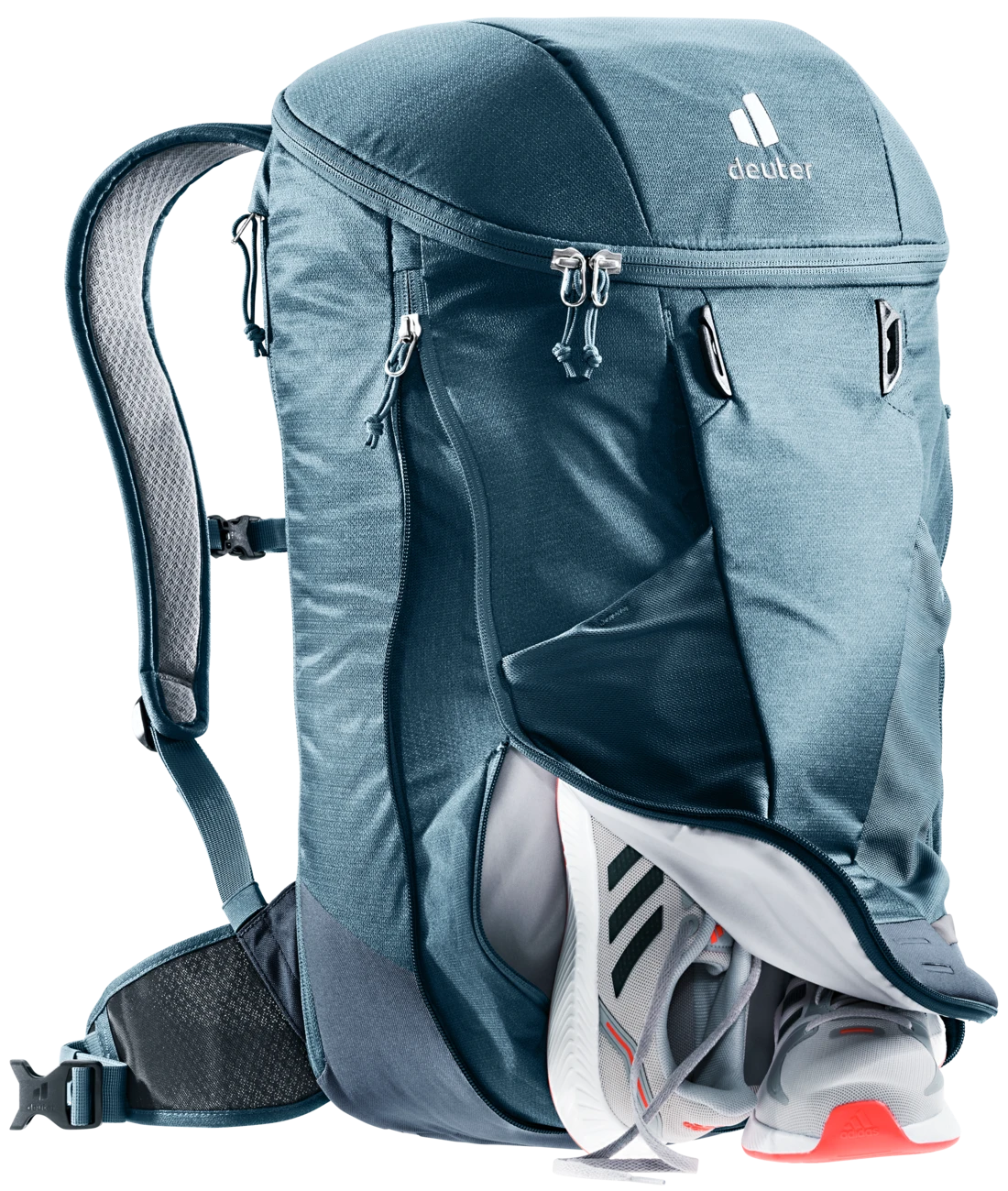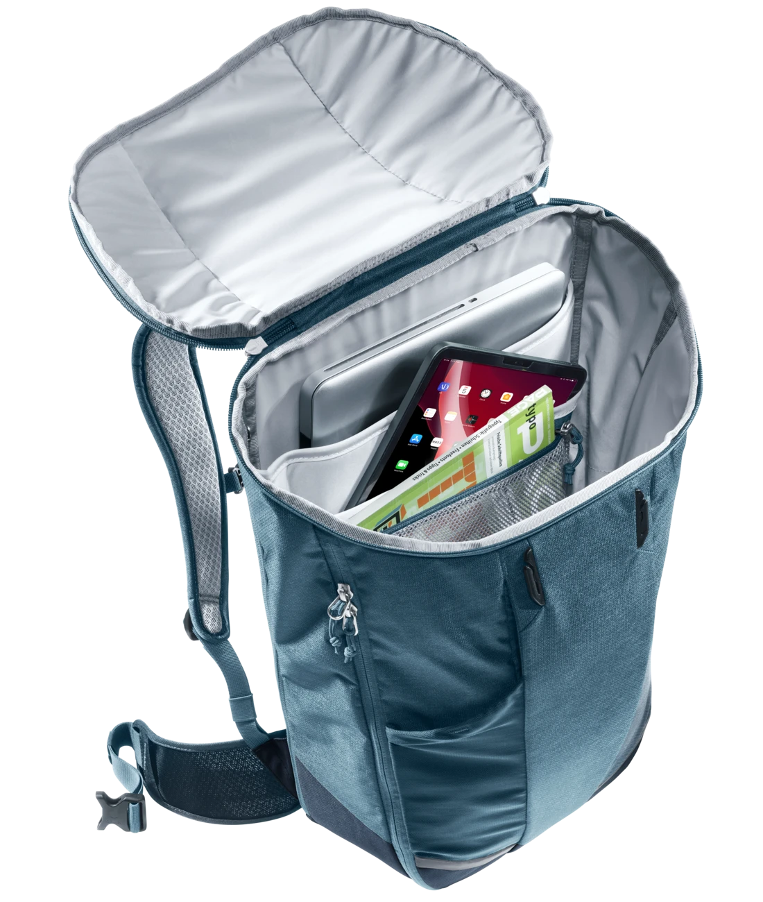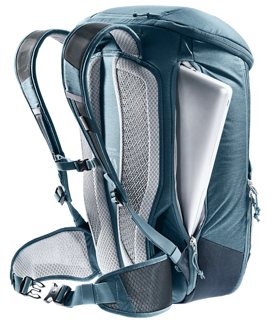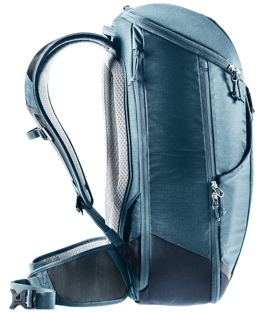 Der Großstadtdschungel fordert Gleichgewicht und ist schweißtreibend zugleich. Da muss der Lastenschwerpunkt des Rucksacks körpernah und die Luftzirkulation maximal sein. Dafür sorgen das komfortable Airstripes Tragesystem mit reduzierter Rückenauflage, das luftdurchlässige Air Spacer Mesh, die ergonomisch geformten, perforierten Schulterträger und Hüftflossen und der verstellbare Brustgurt. Im Inneren lässt sich dank Volumenerweiterung neben Arbeitsunterlagen auch der Einkauf verstauen. Helmhalterung, abnehmbare Regenhülle und reflektierende Elemente sorgen für die Sicherheit.