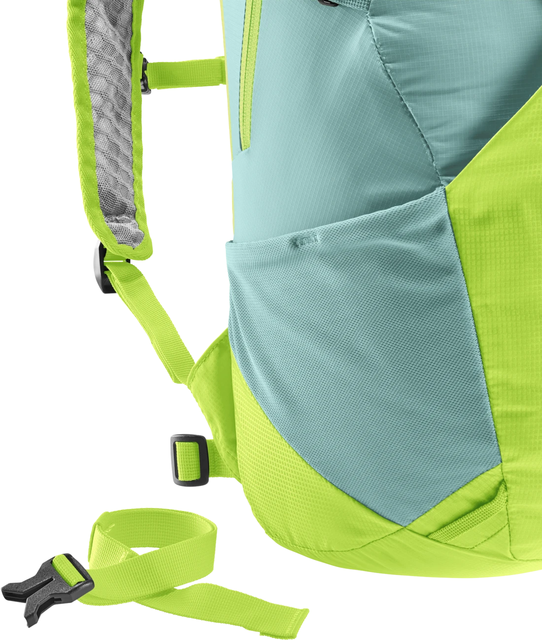 Leicht, schnell und nachhaltig am Berg dank bewährtem Lite Tragesystem, ergonomisch geformten, perforierten Schulterträgern, abnehmbaren Bauchgurt, stufenlos verstellbarem Brustgurt und 100% recyceltem und bluesign(R) zertifiziertem Hauptmaterial. Bei schnellen Hikes sorgen seitliche Kompressionsriemen für die Minimierung von Auf- und Abbewegung der Ladung und damit für eine uneingeschränkte Bewegungsfreiheit. So wird wichtige Energie auf längeren Strecken gespart.