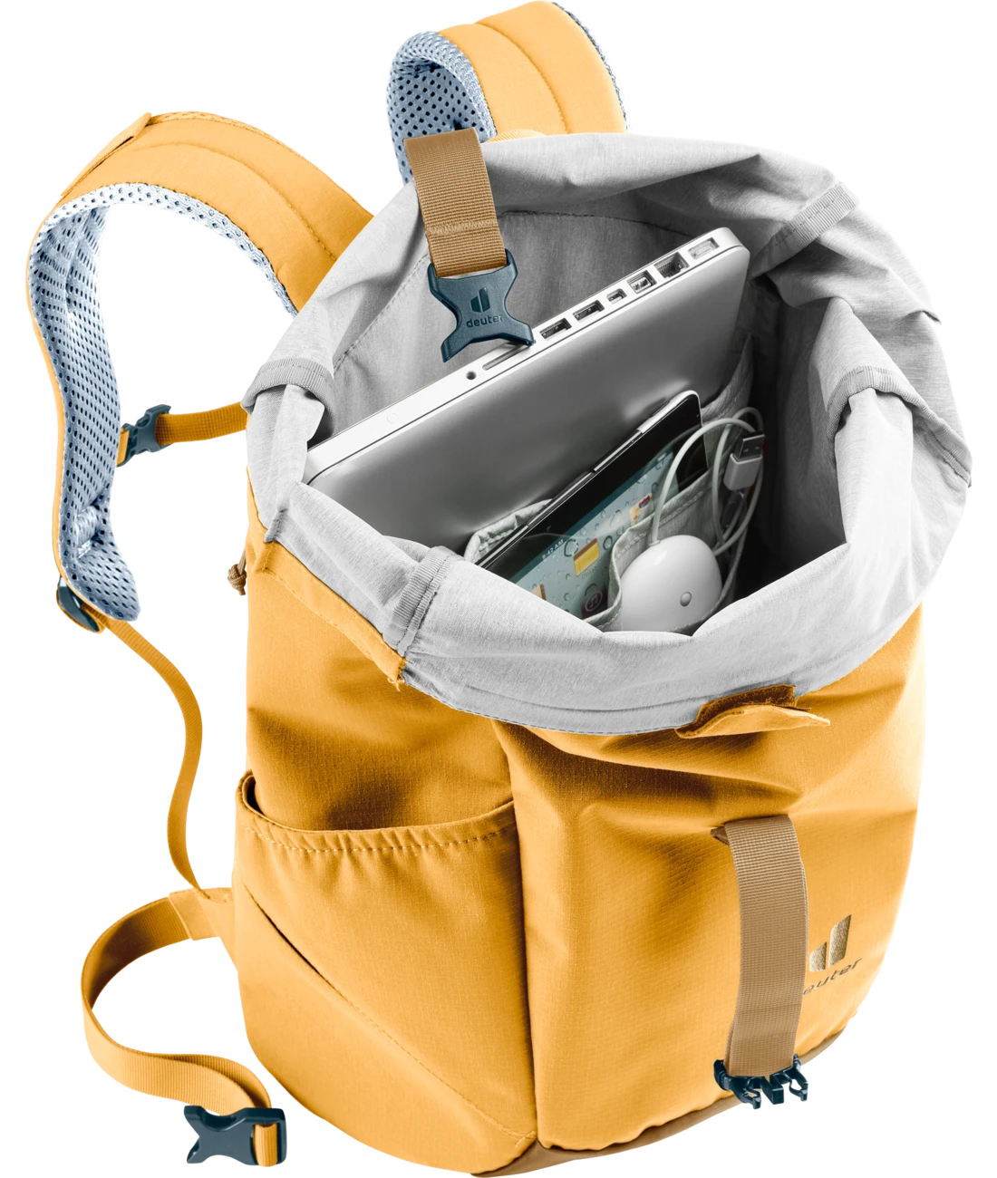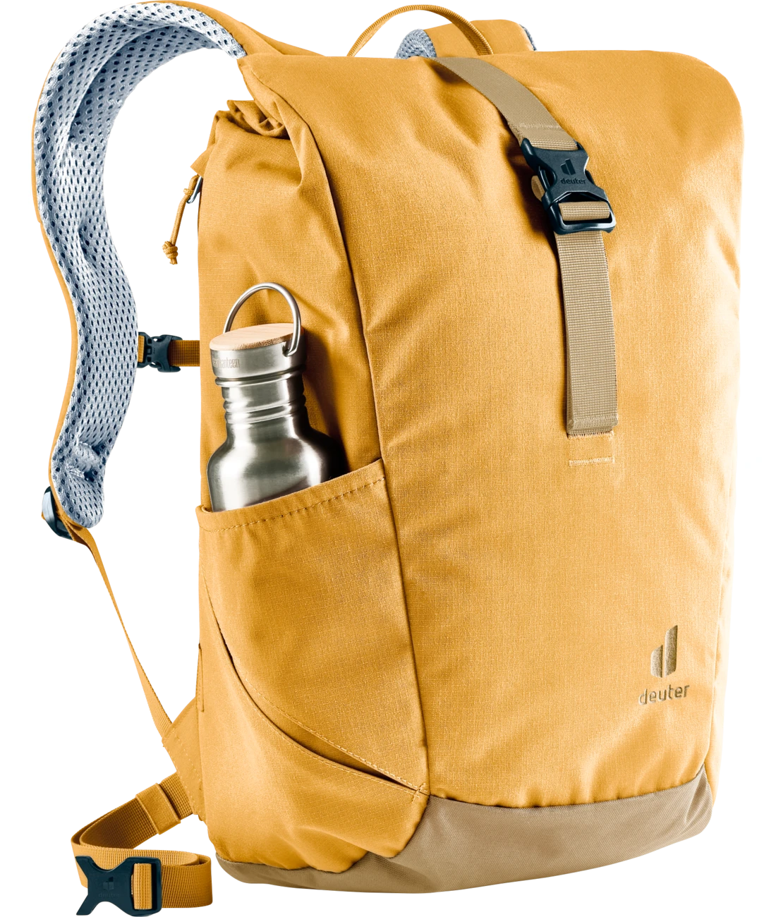 Dank perforierter, ergonomischer Schulterträger und geringer Rückenauflage des Airstripes Rückensystems punktet der Stepout mit maximaler Luftzirkulation und hohem Tragekomfort. Die Roll-Top Volumenerweiterung, das seitliche Handyfach und die elastische Seitentasche sorgen für schnellen Zugriff auf wichtige Dinge. Im Inneren bieten Dokumenten- und Laptopfach sowie Trinkflaschen-Halterung eine gute Organisation.