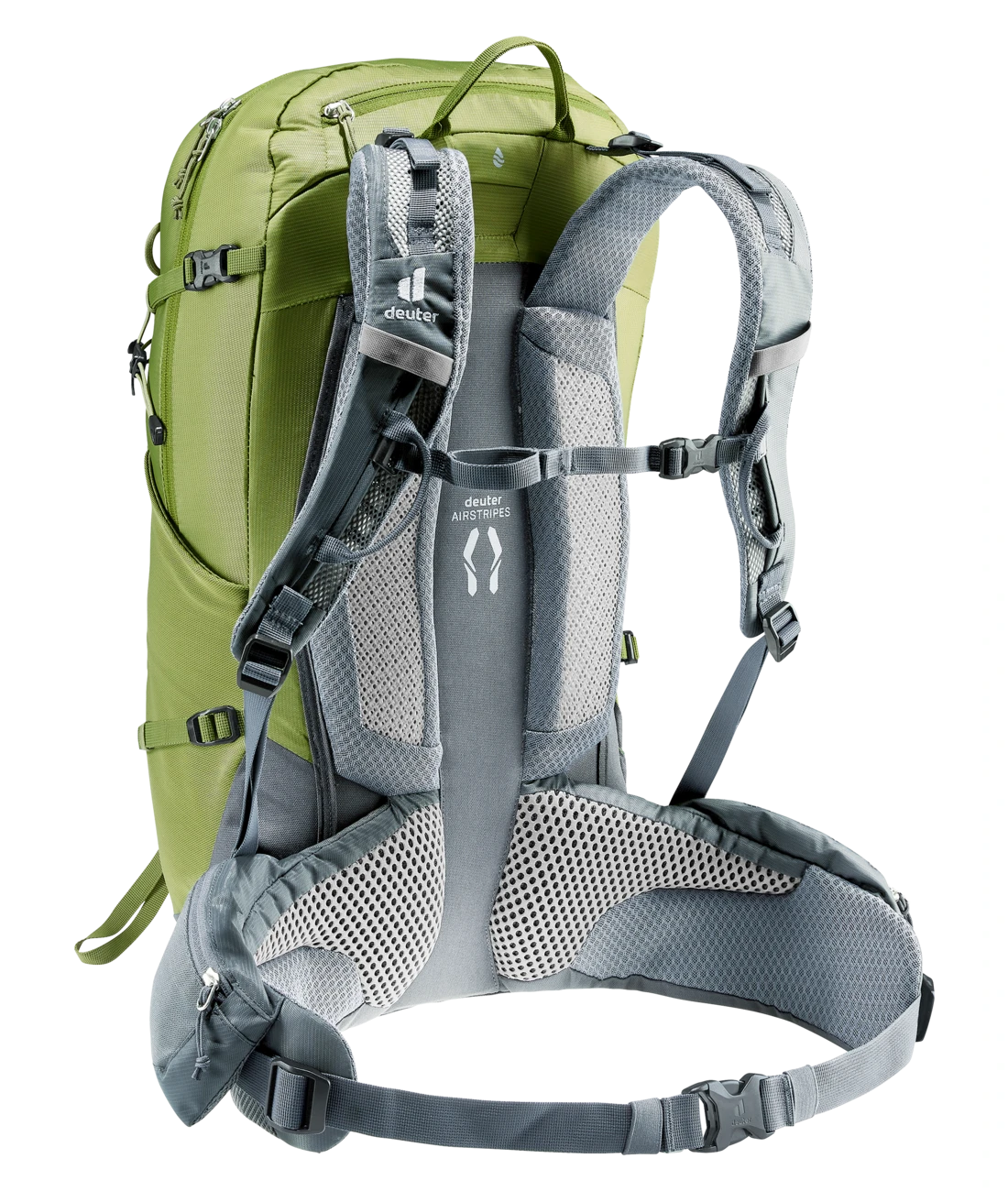 Das Airstripes Rückensystem mit geringer Auflagefläche und luftdurchlässigem, schnell trocknendem Air Spacer Mesh sorgt zusammen mit den perforierten Schulterträgern und Hüftflossen für maximale Belüftung, ideale Lastverteilung, mehr Tragekomfort und kompakten Sitz auf Mehrtagestouren mit Klettersteig. Dank Fixierungen an den Schulterträgern sind die Karabiner des Klettersteigsets stets griffbereit. Zudem sind Ausrüstungsgegenstände und Material durch den großen Reißverschluss-Hauptfachzugang und die elastischen Seitentaschen schnell erreichbar oder finden im separaten Bodenfach Platz.