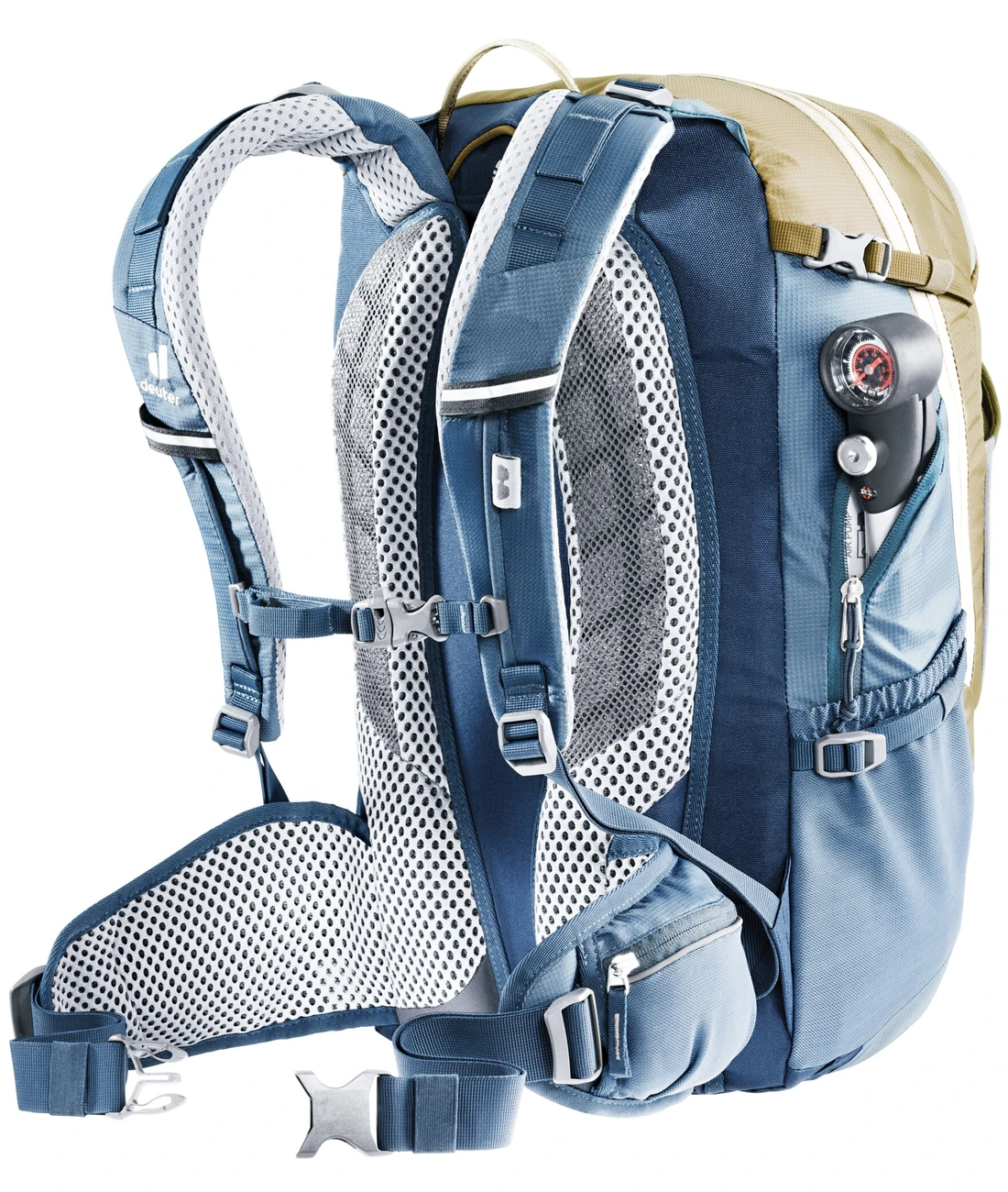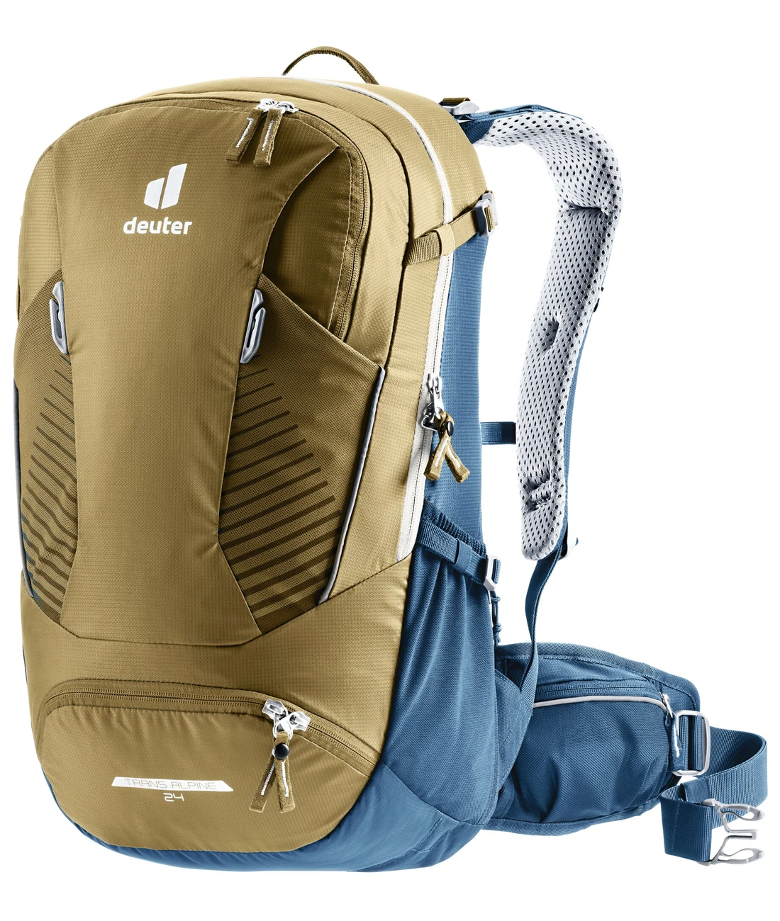 Der neue Trans Alpine Rucksack in neuem Design bietet die gewohnte Qualität und Ausstattung. Ganz neu ist die einfach und schnell handzuhabende Helmhalterung sowie das von außen leicht zugängliche Pumpenfach. Das neue Rückensystem bietet verbesserte Belüftung aufgrund geringerer Auflagefläche und flexiblere Schulterträger für mehr Bewegungsfreiheit.