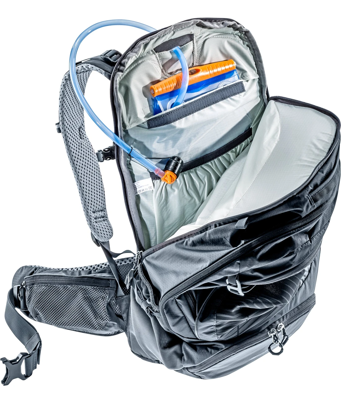 Er ist der Liebling der ambitionierten Touren-Biker und Alpenüberquerer. Komplett überarbeitet sitzt er perfekt auf dem Trail und sorgt durch die geringe Auflagefläche des Airstripes-Rückensystems für beste Belüftung bei optimaler Kontrolle. Die funktionelle Aufteilung und das große, aufklappbare Organisationsfach sorgen für Ordnung und Übersicht.