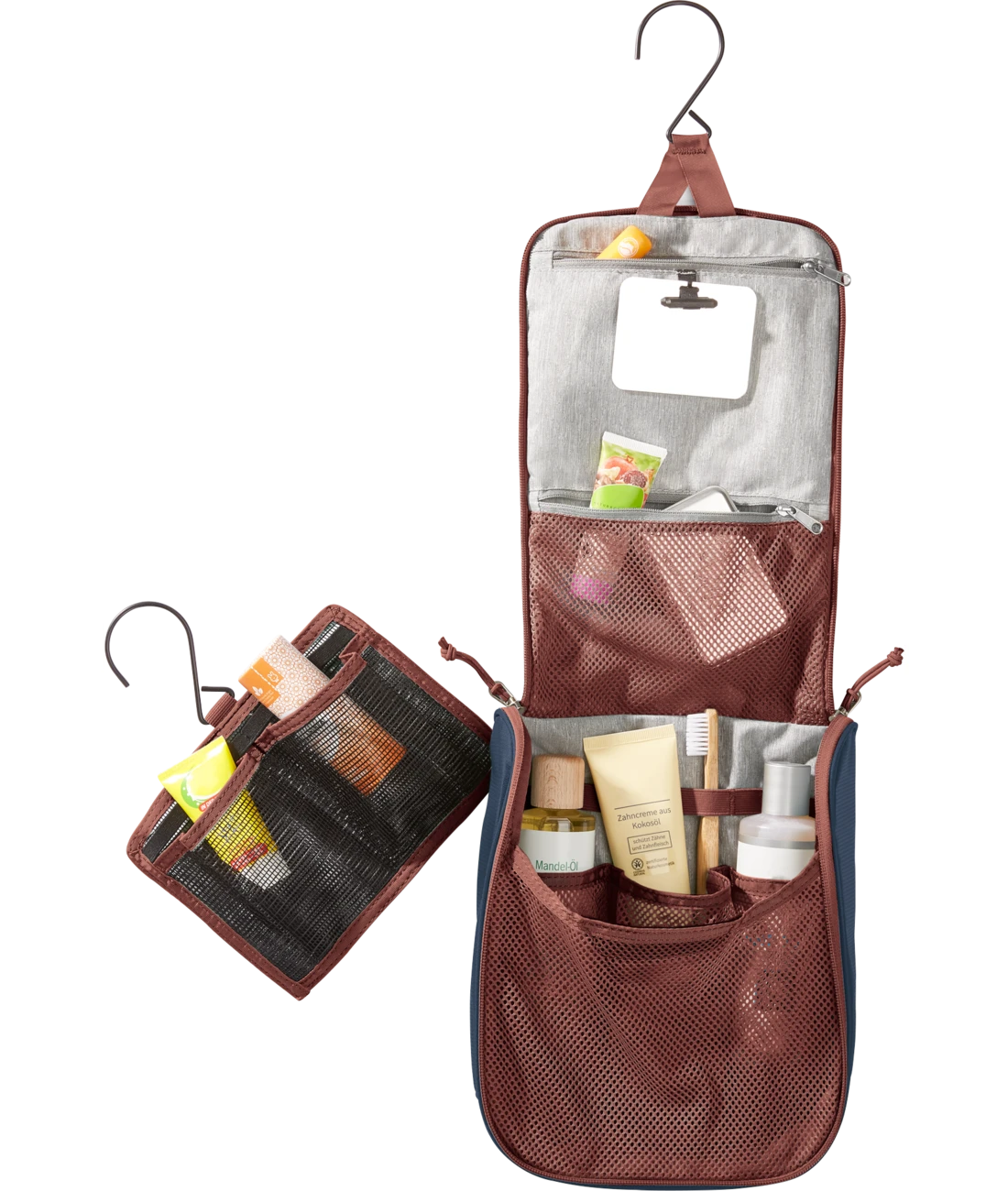 Für Urlauber, die gerne gut organisiert reisen und sich einen tollen Überblick über ihre Hygieneartikel wünschen. Sie können diesen Kulturbeutel mit dem verstaubaren Haken ganz einfach aufhängen und haben so alles schnell griffbereit und doch aufgeräumt. In der Tasche befindet sich ein Elastikband mit dem Sie kleinere Artikel wie zum Beispiel Ihre Zahnbürste zusätzlich fixieren können. So herrscht noch mehr Ordnung – auch nach einem Transport im Koffer. Außerdem verfügt der Beutel über eine extra herausnehmbare Netztasche – praktisch, wenn Sie zum Beispiel auf dem Campingplatz nur mal kurz zur Dusche wollen und nicht den kompletten Kulturbeutel mitnehmen möchten. Und mit dem abnehmbaren Spiegel sind Sie vorbereitet, falls einmal kein Spiegel in der Nähe sein sollte.
