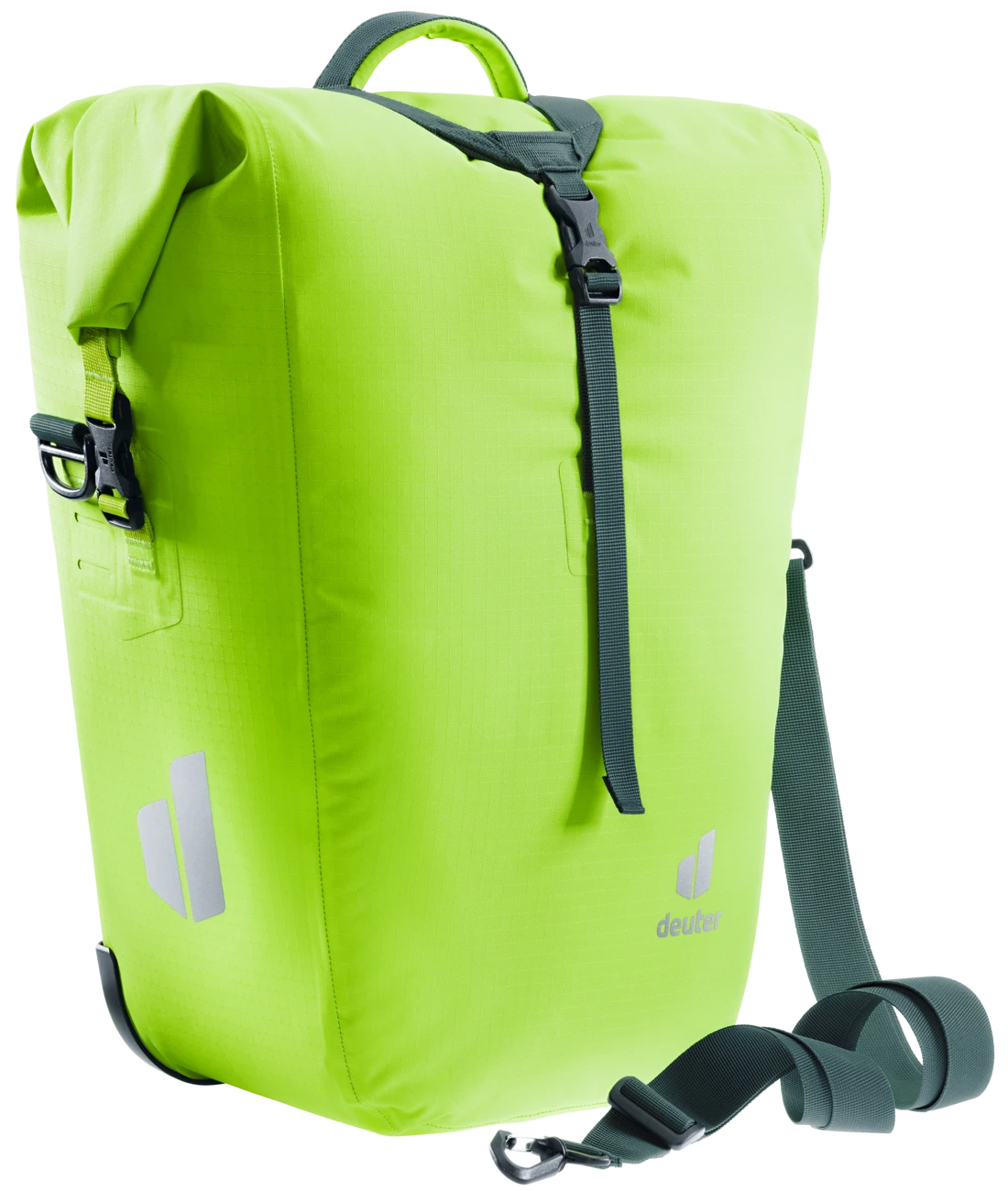 Die wasserdichte Fahrradtasche bewahrt Reisegepäck sicher vor dem Eindringen der Nässe durch Regen oder Spritzwasser. Dank des 2-Wege-Rolltopverschlusses kann das Volumen um zusätzliche 5 Liter erweitert werden. Die neu entwickelte BagFix-Halterung sorgt für maximale Bewegungsfreiheit, da die Last zu 100% auf dem Hinterrad und nicht auf dem Rücken des Bikers liegt. Die Tasche kann mit nur einem Handgriff vom Gepäckträger abgenommen und als Schultertasche verwendet werden. So sind ihrem Einsatz kaum Grenzen gesetzt.