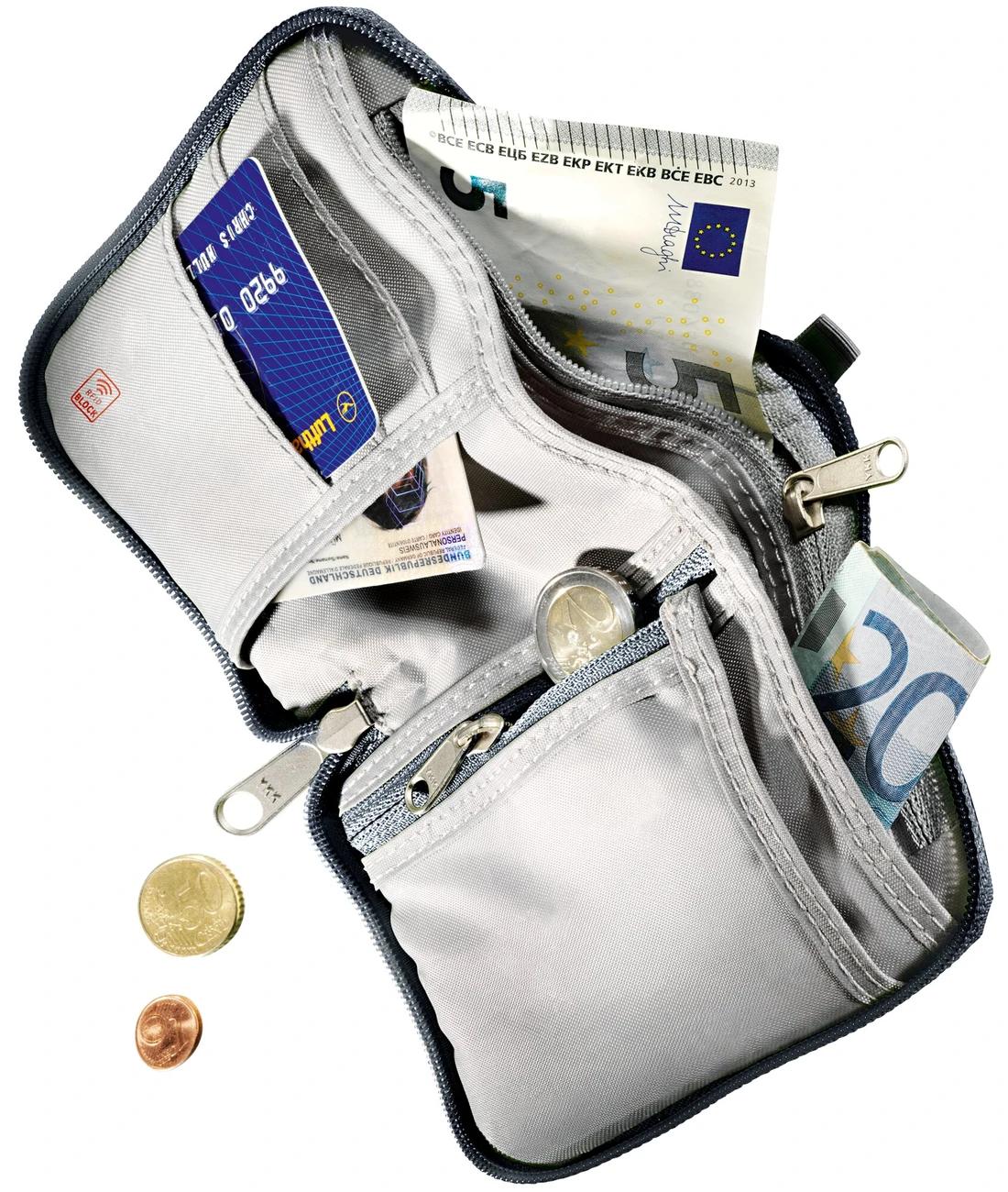 Die leichte Outdoor-Geldbörse mit umlaufendem Reißverschluss bietet dank der integrierten Datenschutzfolie (RFID BLOCK) Schutz vor Datendiebstahl für bis zu drei Karten. Das lange Steckfach sowie das Geldschein- und Münzfach mit Reißverschluss gewähren eine sichere Aufbewahrung von Geld und wichtigen Papieren.